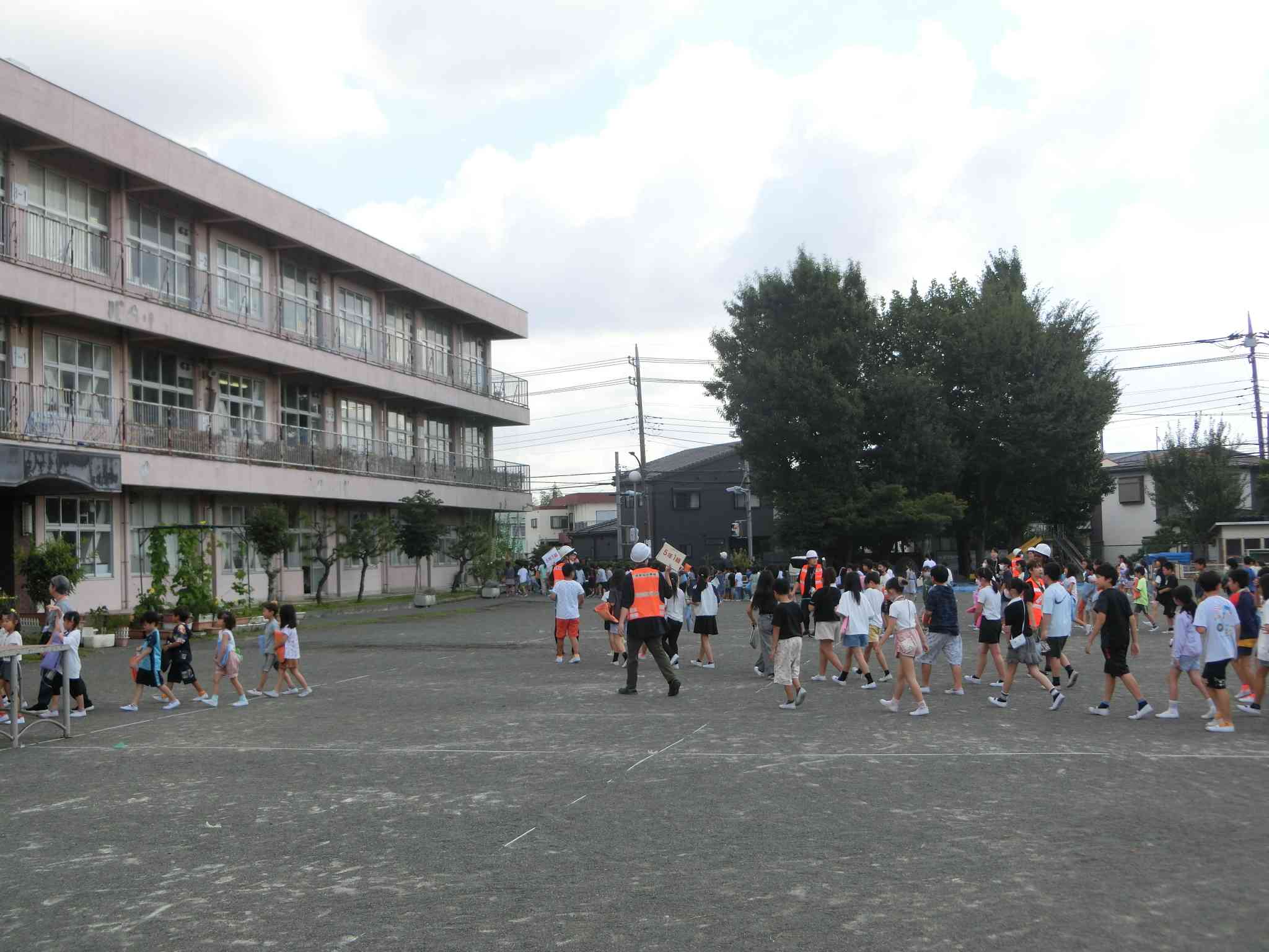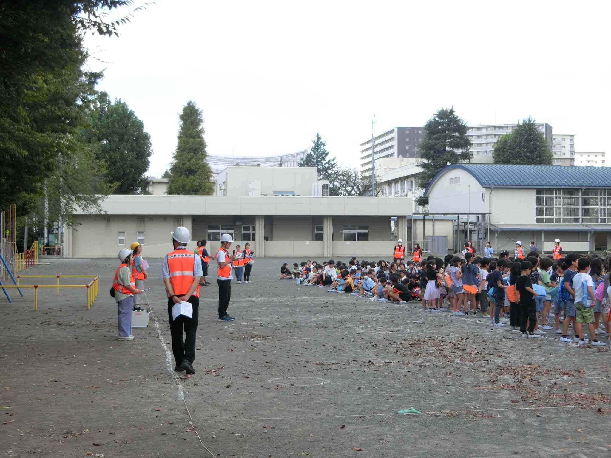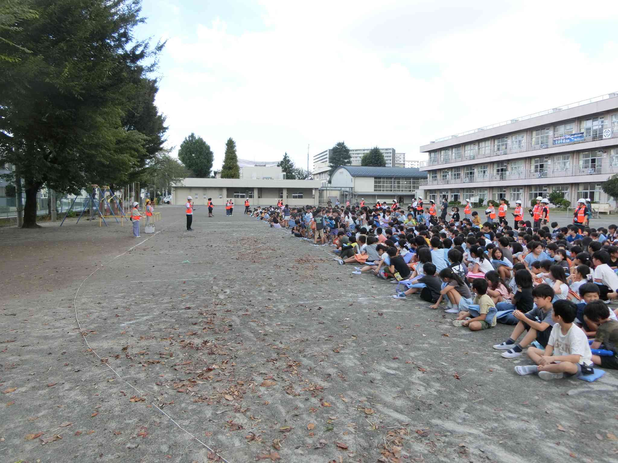 火災を想定した避難訓練を行いました。全児童の避難完了まで8分かかりました。 熱中症指数が高いため避難してすぐに教室へ戻り残りを校内放送で行いました。