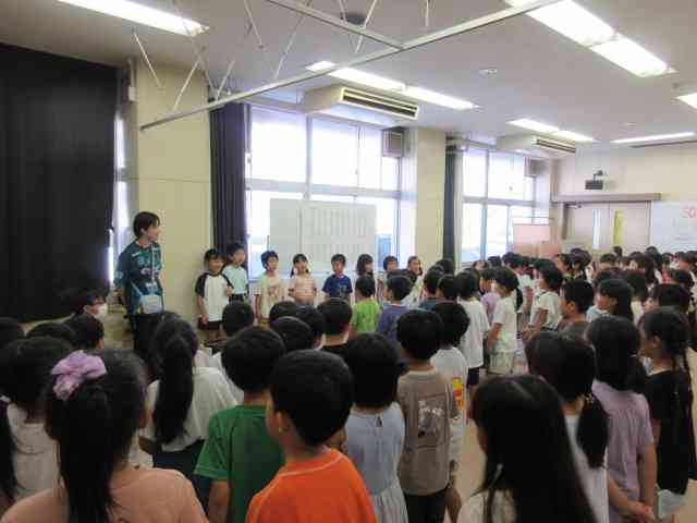 1年生、式典での発表にむけて、 来週は毎日学年での練習が予定されています。 今日は朝の活動で、 大きな楽しそうな声が聞こえてきたので、 視聴覚室をのぞいてみました。 全容は見えませんでしたが・・ワクワク感が高まりますね。