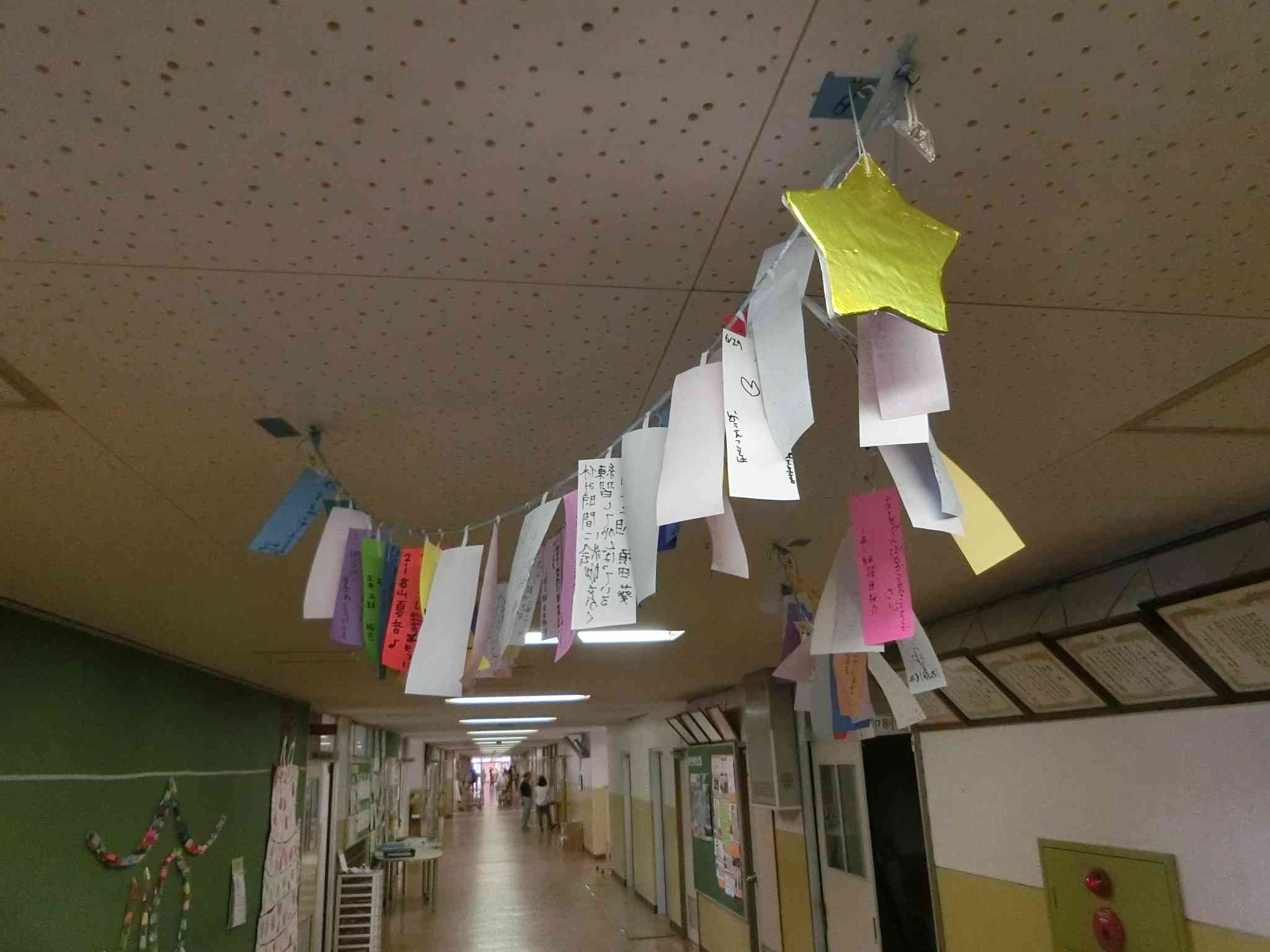 七夕は「たなばた」「しちせき」とも読み、 7月7日の夜に、願いごとを書いた色とりどりの短冊や 飾りを笹の葉につるし、星にお祈りをする 昔からの慣習の一つです。 校長室前には、子どもたちの願い(がんばっていること)の短冊が300余り飾られています。 面談などで来校された際に是非ご覧下さい。