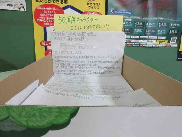 50周年記念事業の実行委員さんが、 6月28日児童会の計画委員会に、 マスコットキャラクターやスローガン募集の相談に来ました。 計画委員会では、どんなふうに進めていくかを話し合い、 6月30日の代表委員会で提案しました。 そして、7月3日のオンライン朝会で作品募集を全校に呼びかけました。 マスコットキャラクター募集の締め切りは7月20日です。 どんどん集まってきています。【添付ファイル】