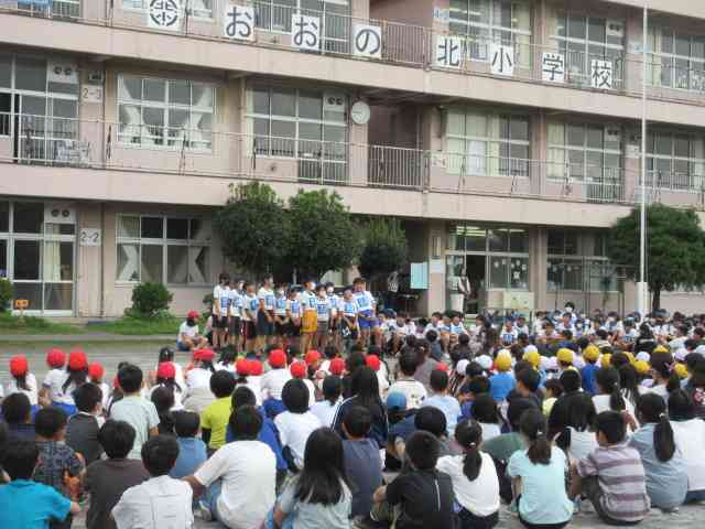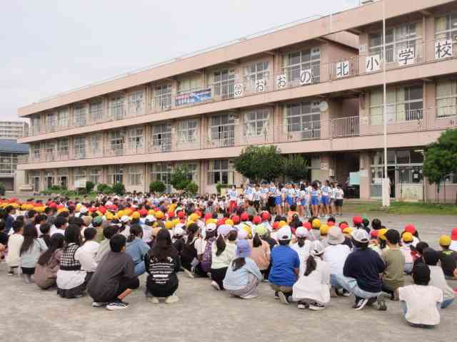 6年生の連合運動会参加に向けて、 児童会で激励会が開かれました。 1〜5年生がエールを送り、 6年生は、エントリーした競技ごとに意気込みを伝えました。 これまでの練習の成果を生かせるように、 粘り強く取り組んでくださいね。 こころくんも応援しています!