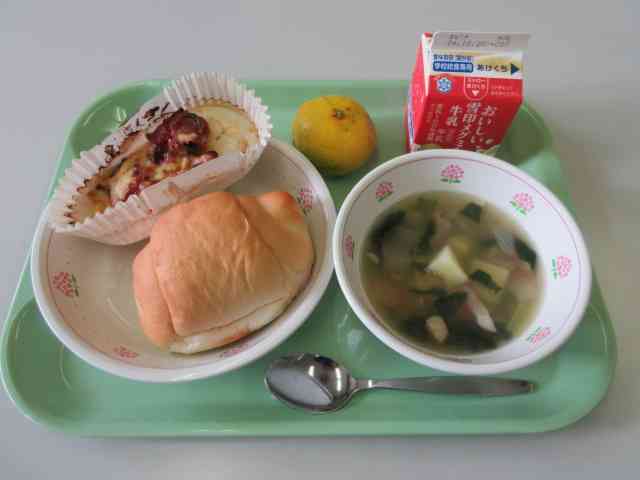 今日の献立は、ロールパン、ホキのピザ焼き、ひよこ豆のスープ、みかん、牛乳です。 ホキは、日本から遠く離れたニュージーランドやオーストラリアの深い海の中でとれる白身の魚です。おうちではあまり食べないかもしれませんが、ファーストフードのフィッシュバーガーやお弁当の白身魚のフライにホキはよく使われます。今日はホキに玉ねぎとピーマンのピザソースとチーズをのせて、オーブンで焼きました。 ホキは、体をつくるもとになる赤のなかまの食べ物です。【添付ファイル】