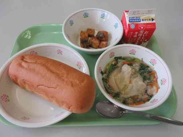 今日の献立は、黒パン、しいらの米粉揚げ、ワンタンスープ、牛乳です。 ワンタンは、中国で生まれた料理です。ワンタンは漢字で「雲を呑む」と書いてワンタンと読みます。スープに入れたワンタンが空にぽっかり浮かんだ雲のように見えたからと言われています。小麦粉から作られたワンタンの皮に1枚ずつ豚ひき肉を包んで、調理員さんがおいしいワンタンスープを作ってくれました。 ワンタンの皮は、熱や力のもとになるきいろのなかまの食べ物です。【添付ファイル】