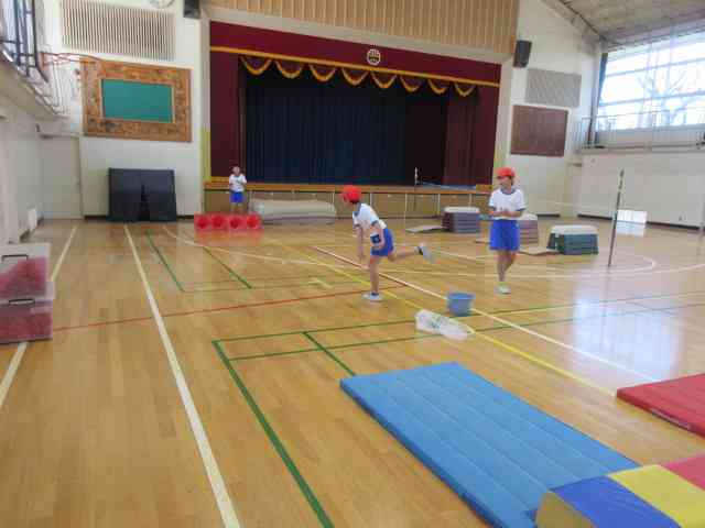スポーツ委員会の企画で、 みんなで体を動かして体力をつけようと、 休み時間に体を使った遊びを提案しています。 今日は3年生と4年生が対象でした。 3年生は書かれたコースをボールにぶつからないように 6往復するというルールです。 スポーツ委員が投げるボールを交わしながら走り抜けるのは至難の業です。 4年生は、体育館でバスケットのシュートや 三角コーンへのボール投げでした。 うまく入ると投げた人と同じように周りにいる人も声を上げていました。 スポーツ委員会が学年に応じた運動遊びを企画をしてくれています。【添付ファイル】
