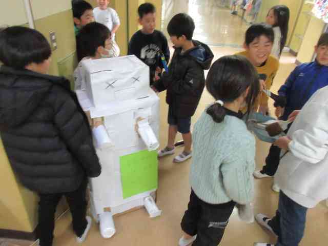 12月9日から13日まで、大掃除週間でした。 美化委員さんが毎日、その日に重点的に掃除をしようというところを放送で呼びかけました。 また、「動かなくなったロボットの燃料はゴミやホコリだから、 ゴミやホコリを集めよう」 という内容の動画を作り、みんなに掃除を呼びかけました。 楽しみながらゴミやホコリを集める姿があちこちで見られました。 お疲れ様でした。 さあ、ロボットは動くかな!?
