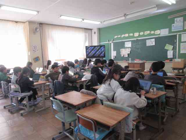 終業式のあとの3時間はそれぞれのクラスの時間割で学習をします。 あゆみは、ろうかで担任からしっかりゆったり話を聞いて、 渡されるところが多いでしょうか。 その間教室では、タブレットで課題を解いたり、映像を見たり、 グループ学習をして、自分の番を待っています。 2学期のがんばりはどうだったでしょうか。 どうぞ、ご家庭で温かい言葉がけをお願いします。