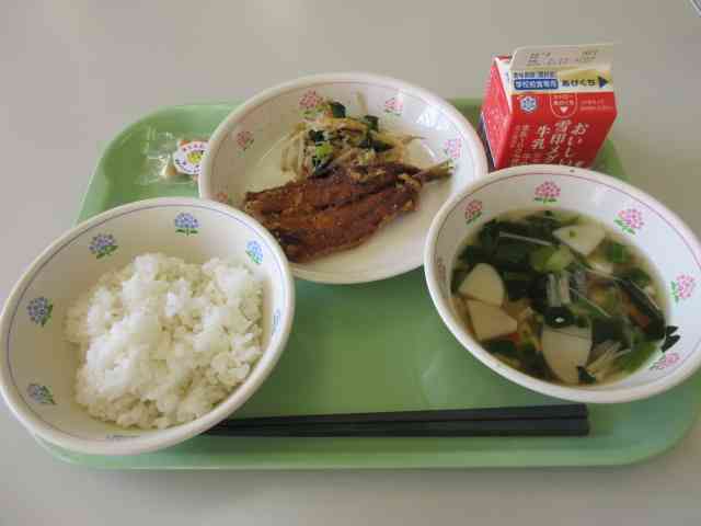 今日は節分豆まめ給食です。献立は、ごはん、いわしのかば焼き、もやしのおかかあえ、すまし汁、福豆、牛乳です。 人参とほうれん草、津久井在来大豆は相模原市内産です。 今年は2月2日が節分です。節分は冬から春への季節の変わり目です。節分にちなんだいわしのかば焼きと、幻の大豆と言われる津久井在来大豆の福豆を、よくかんで味わって食べてください。 いわしは、体をつくるもとになる赤のなかまの食べ物です。