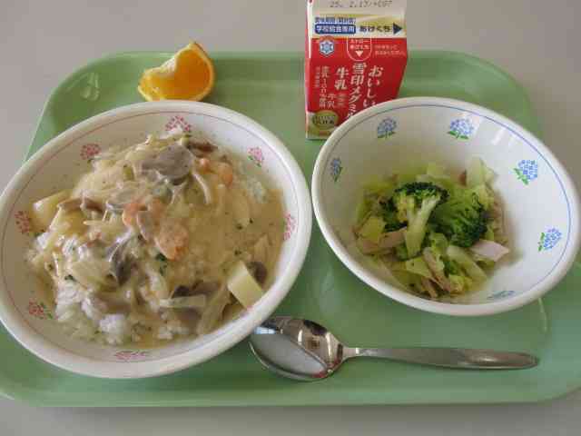 今日の献立は、バターライス、えびのオーロラソース、ブロッコリーとハムのソテー、いよかん、牛乳です。ブロッコリーが相模原市内産です。 いよかんは、愛媛県が昔「伊予の国」と呼ばれ、愛媛県でたくさん作られていたことからいよかんという名前になったそうです。みかんとオレンジをかけあわせて作られたいよかんは、香りがよくてジューシーです。みんなの体を元気にしてくれるビタミンCがたくさん含まれています。 いよかんは、体の調子を整えるみどりのなかまの食べ物です。【添付ファイル】