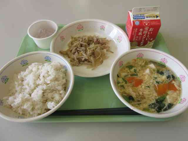 今日の献立は、麦ごはん、納豆、もやしと豚肉の炒め物、かきたま汁、牛乳です。 卵は相模原市内産です。 納豆は、油揚げやみそと同じように大豆から作られます。納豆は煮た大豆とわらに住み着いている納豆菌が一緒になり、運んでいた馬の体温で温められて発酵して偶然できた日本の食べ物です。納豆はたんぱく質など、体によい栄養素がたくさん含まれています。 納豆は、体をつくるもとになる赤のなかまの食べ物です。