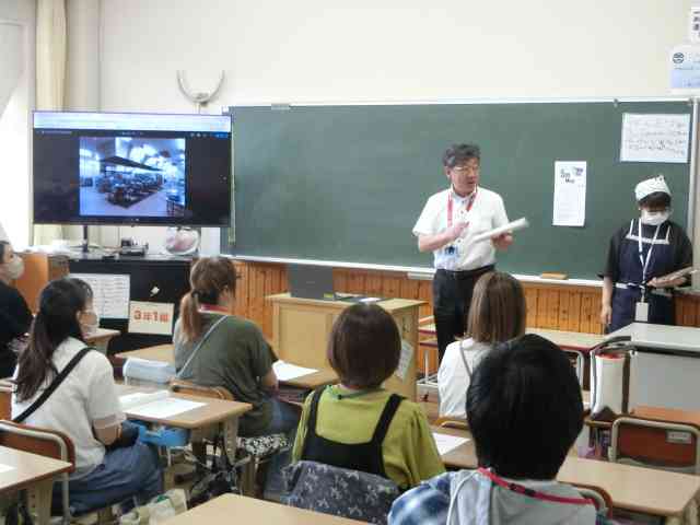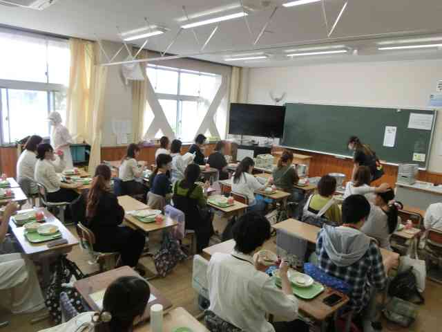 給食試食会を行いました。3年生が校外学習なので教室を借りています。 給食の感想はいかがでしょうか。
