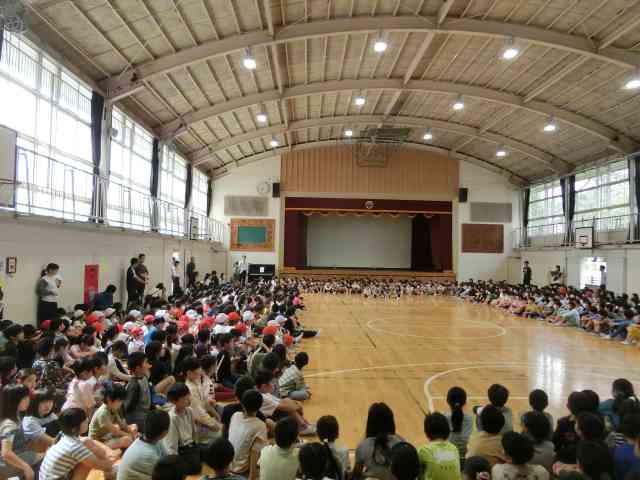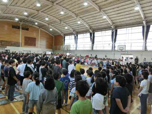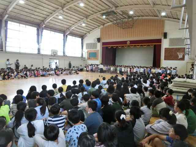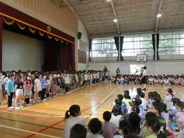 体育館に全学年が集まりました。2年生が「あの青い空のように」を発表してくれました。