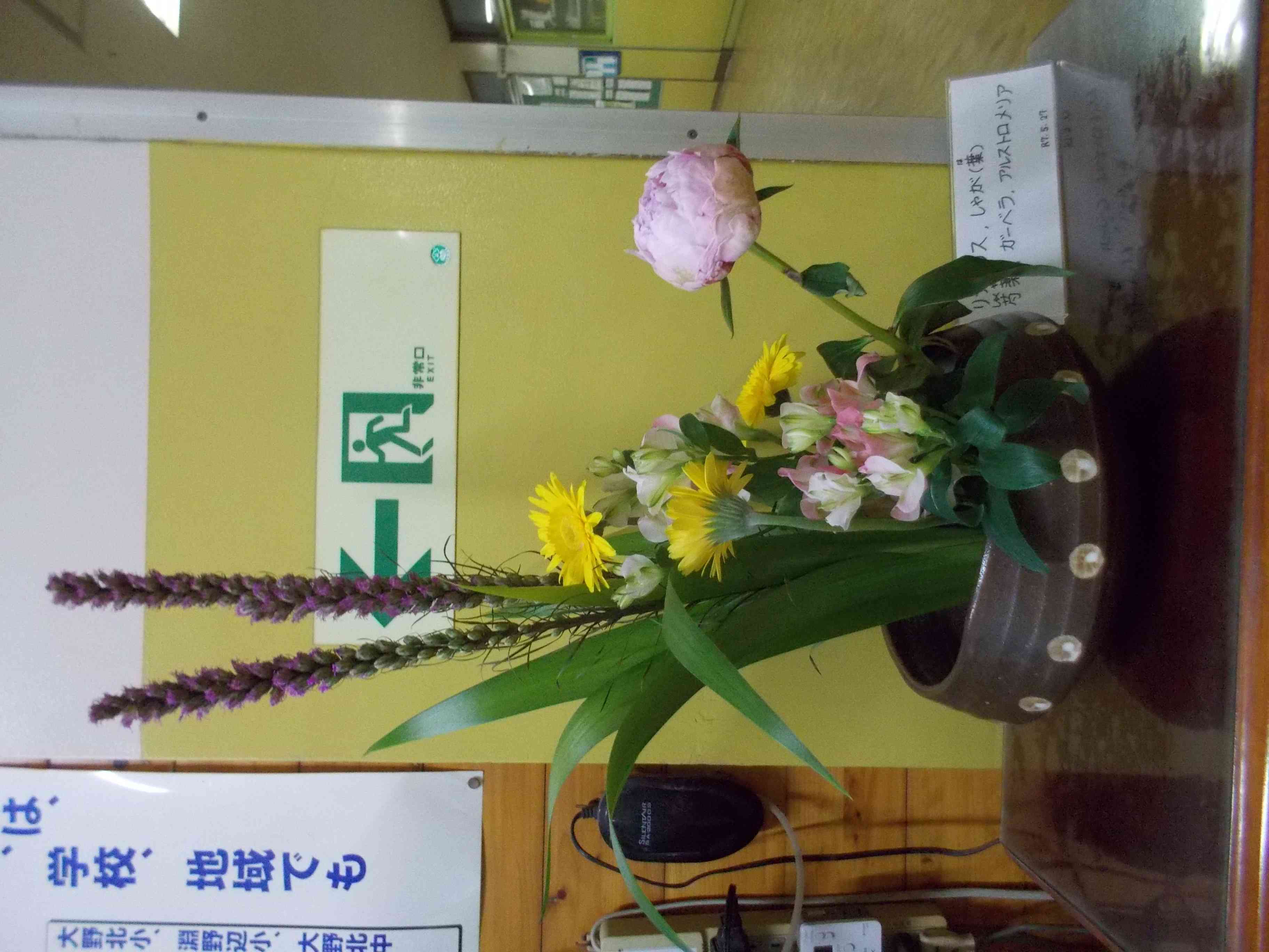今回のお花は、リアトリス、芍薬、ガーベラ、アルストロメリア、葉は、しゃがです。 もう、芍薬が咲く季節ですね。 いつもありがとうございます。