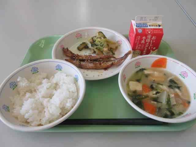 今日のこんだては、ごはん、ししゃもの南蛮漬け、キャベツときゅうりの浅漬け、ほうれん草のみそ汁、牛乳です。 キャベツは相模原市内産です。 ほうれん草がおいしい季節、旬は秋から冬です。 ほうれん草には、風邪を予防してくれるビタミンCやビタミンAに変わるカロテン、そして血をつくる鉄分など体に大切な栄養素がたくさん含まれています。 ほうれん草は、体の調子を整えるみどりのなかまの食べ物です。