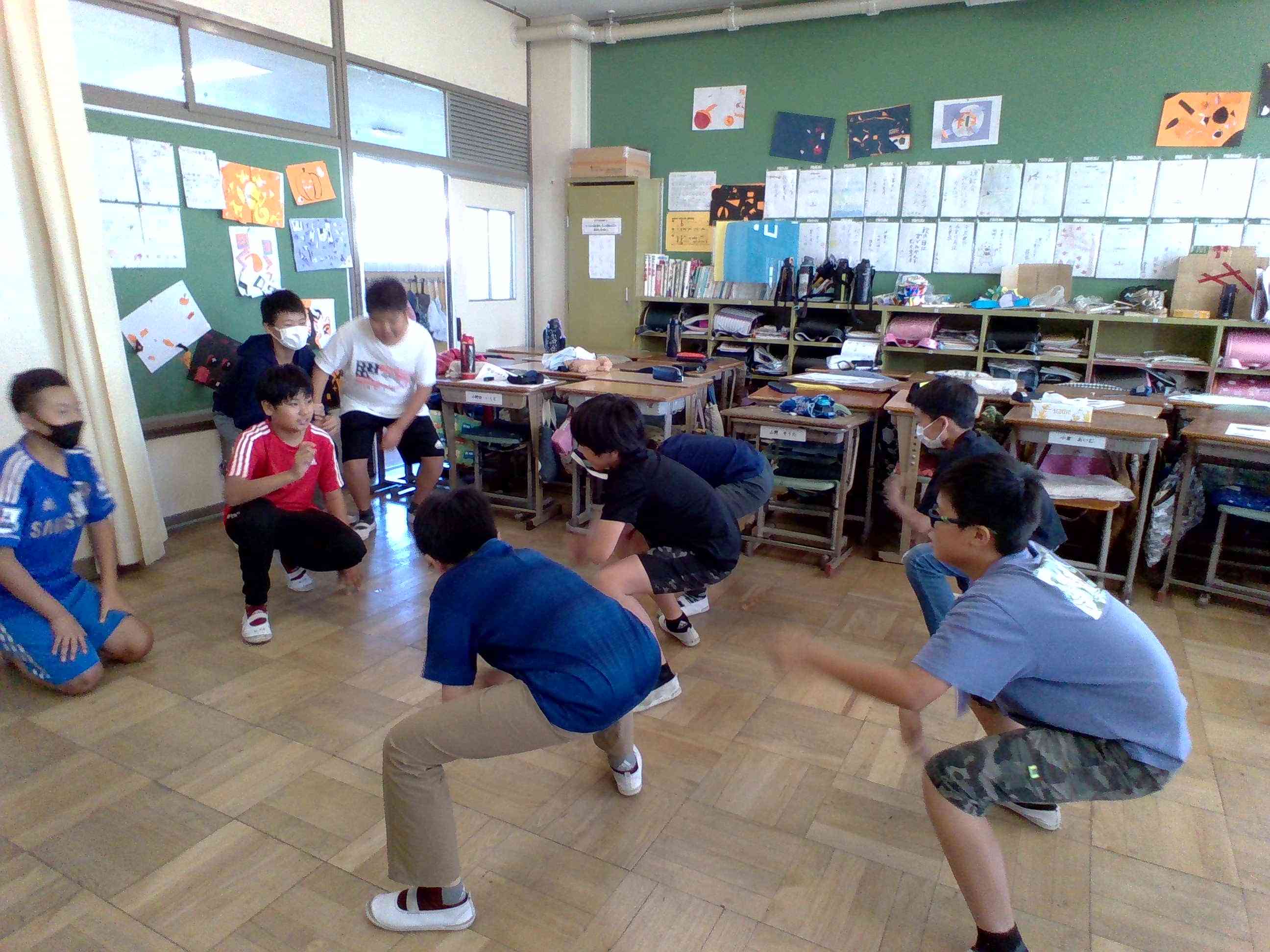 これまでの練習を踏まえて、本番に向けてさらに完成度を 高めるために細かい振り付けの確認を行いました。 「ここをこうするともっとかっこいいよ。」 「腕をもっとのばそう!」「声を揃えよう!」など 自分たちで話し合いながら練習を進めていました。 運動会まであと2日。まだまだ高みを目指して頑張っています。