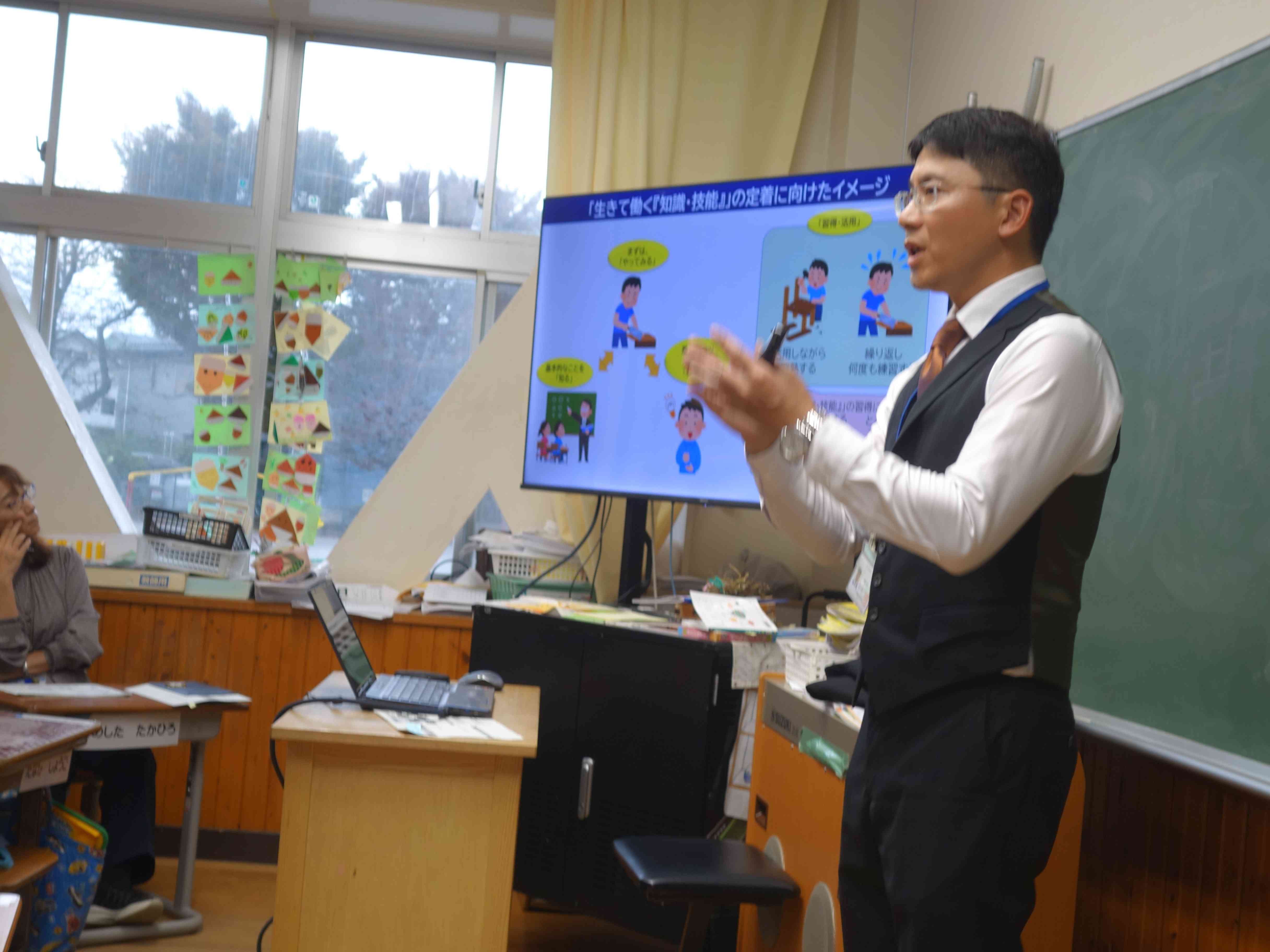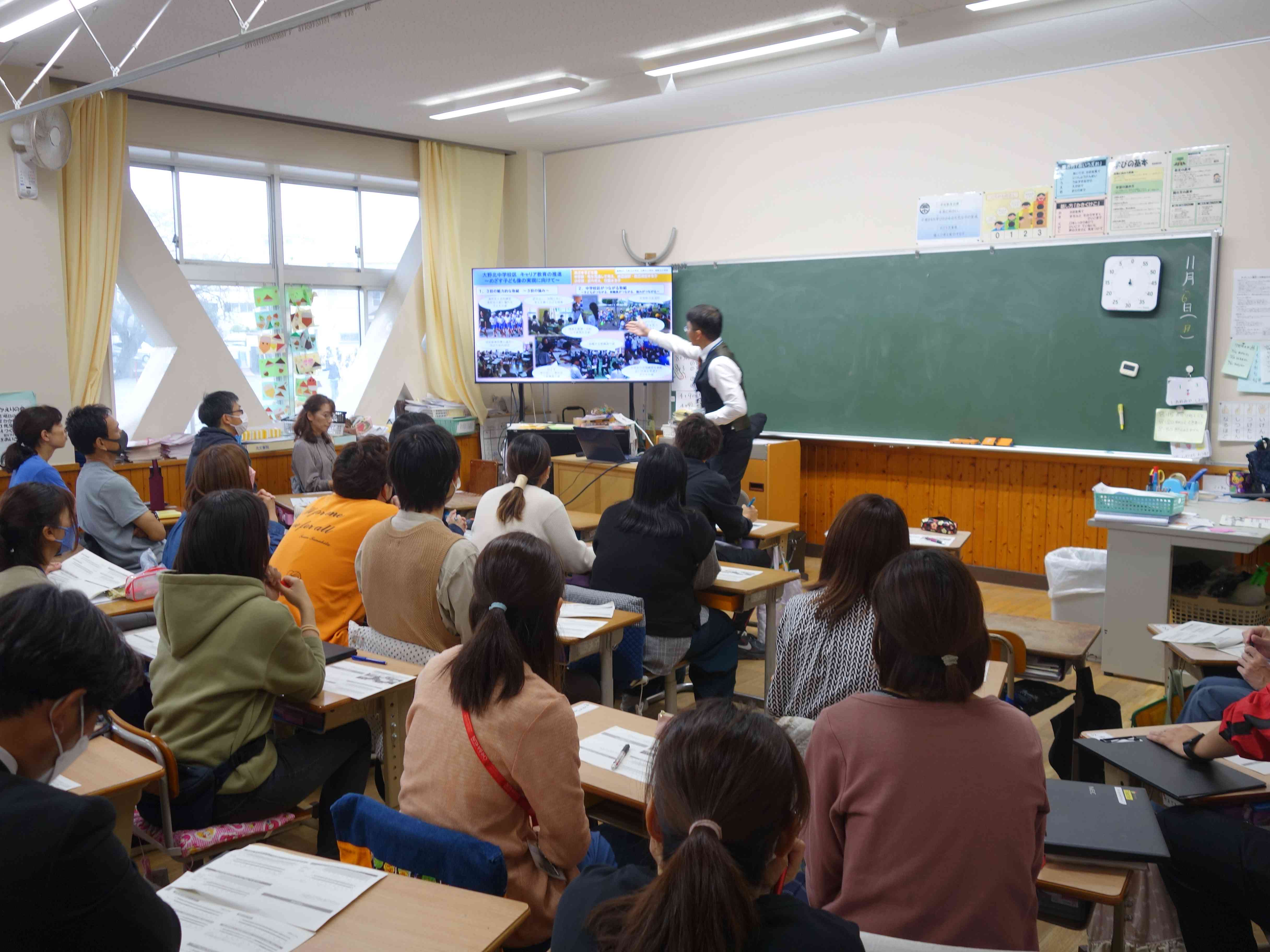 11月6日放課後に、教職員研修を行いました。まず、全国学力学習状況調査結果などから大野北小学校のよいところを伝えてもらいました。また、今後取り組んでいったほうがよいことなどをわかりやすく教えてくれました。
