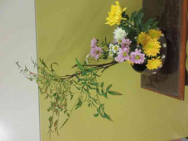 11月6日には、 南天、菊、スプレー菊、小菊を生けてくださいました。 菊の花が3種、秋を感じさせてくれます。