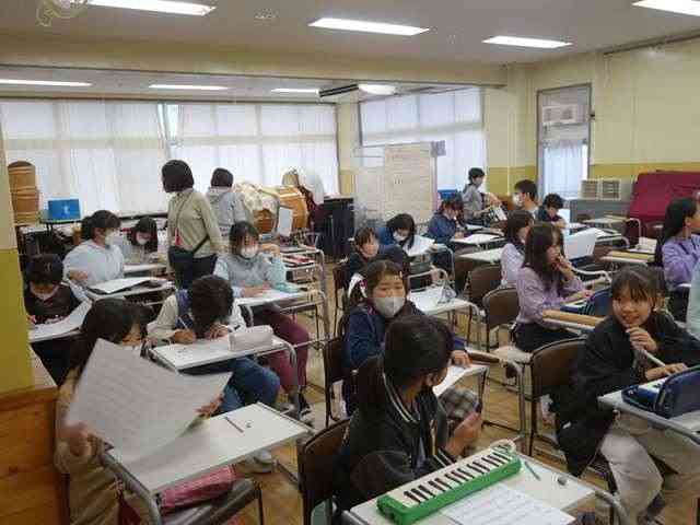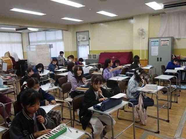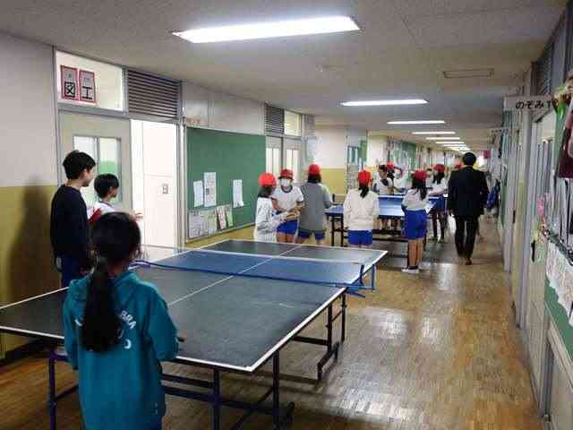 卓球クラブでは「むずかしい」といいながらも楽しんで活動しています。音楽クラブでは、楽譜をもらい練習していました。