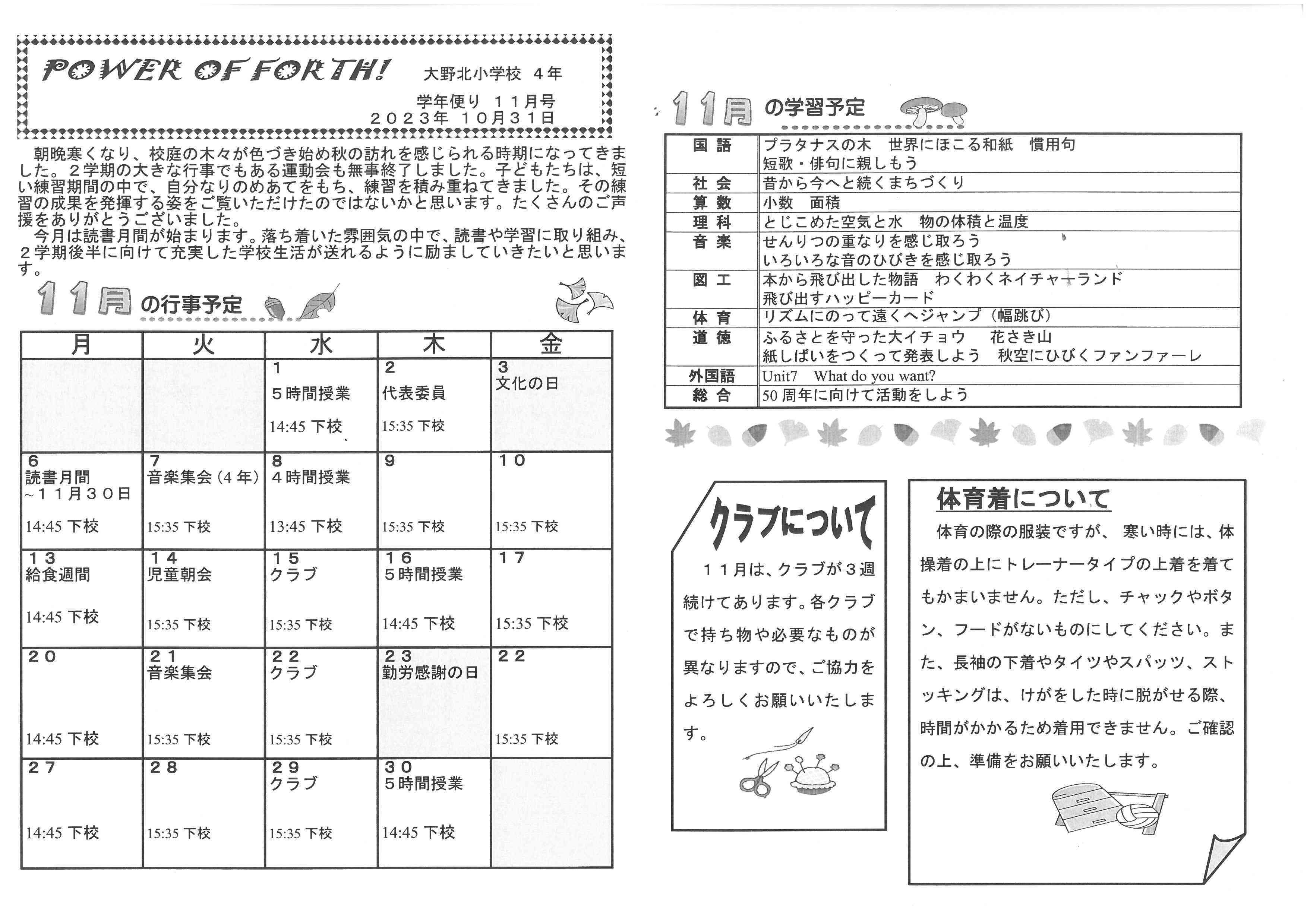 4年学年便り11月号
