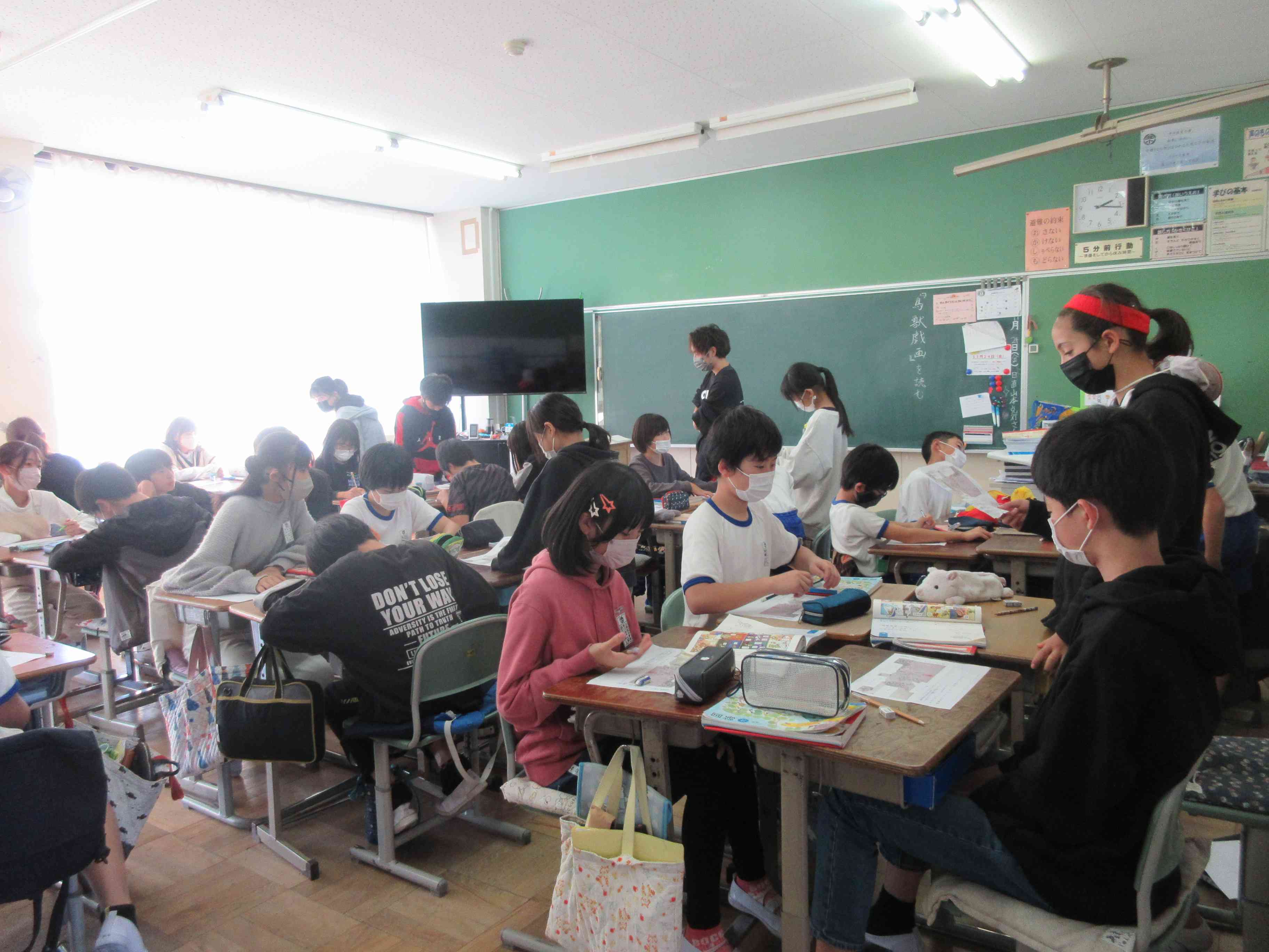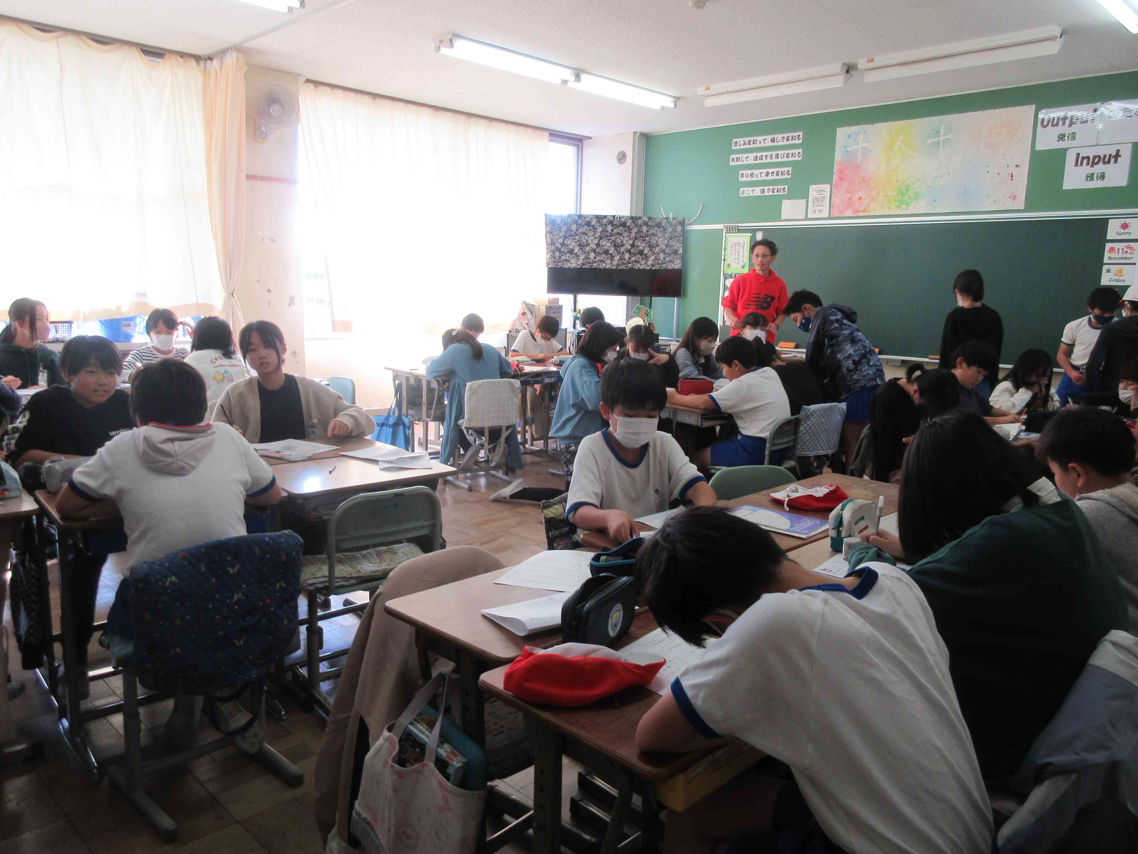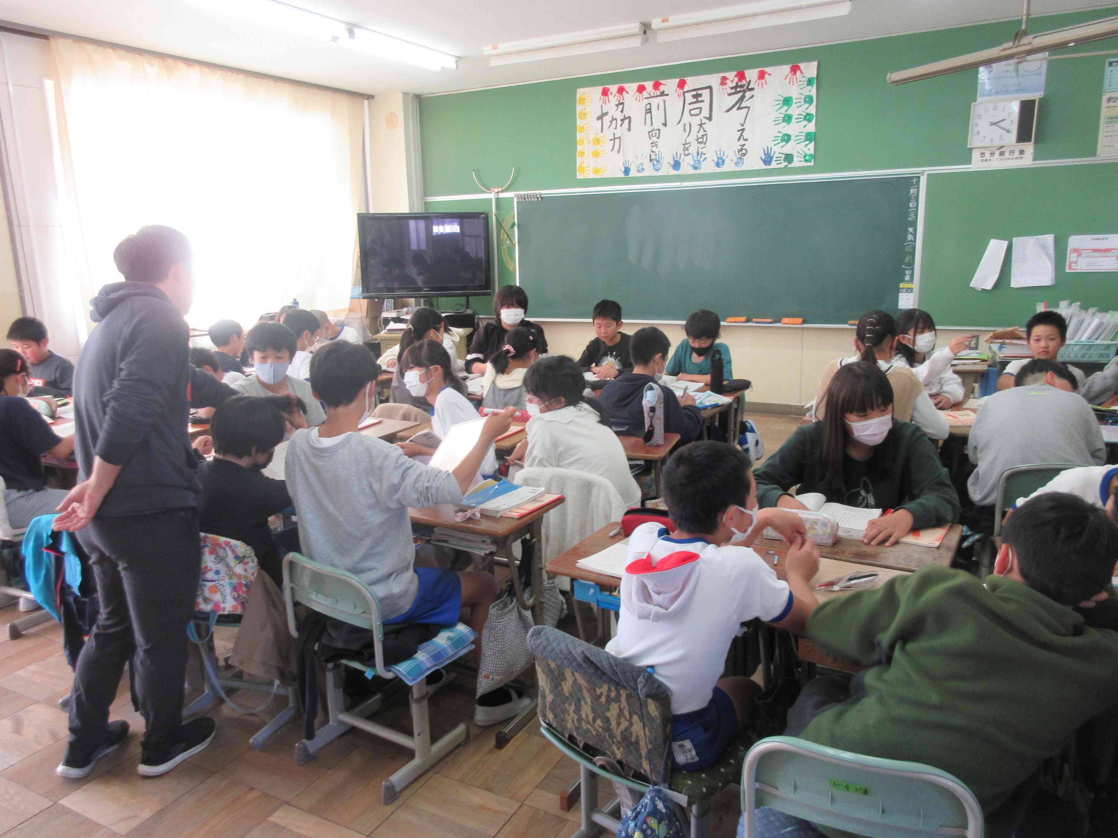 6年教室では・・・ クリスマスパーティについて学級会中。 司会グループを中心に、準備期間なども踏まえた話し合いがされていました。 国語「鳥獣戯画」の学習中が2クラス。 1枚の絵から素晴らしさを出し合っていたクラスと、 場面ごとに絵や文章から内容を話し合っていたクラスがありました。 算数の「比」の学習では、プリントの問題を解いていました。 自分で答えを確認したり、友だちと考え方を伝え合ったりしていました。 さすが6年生、集中力が違います!!【添付ファイル】