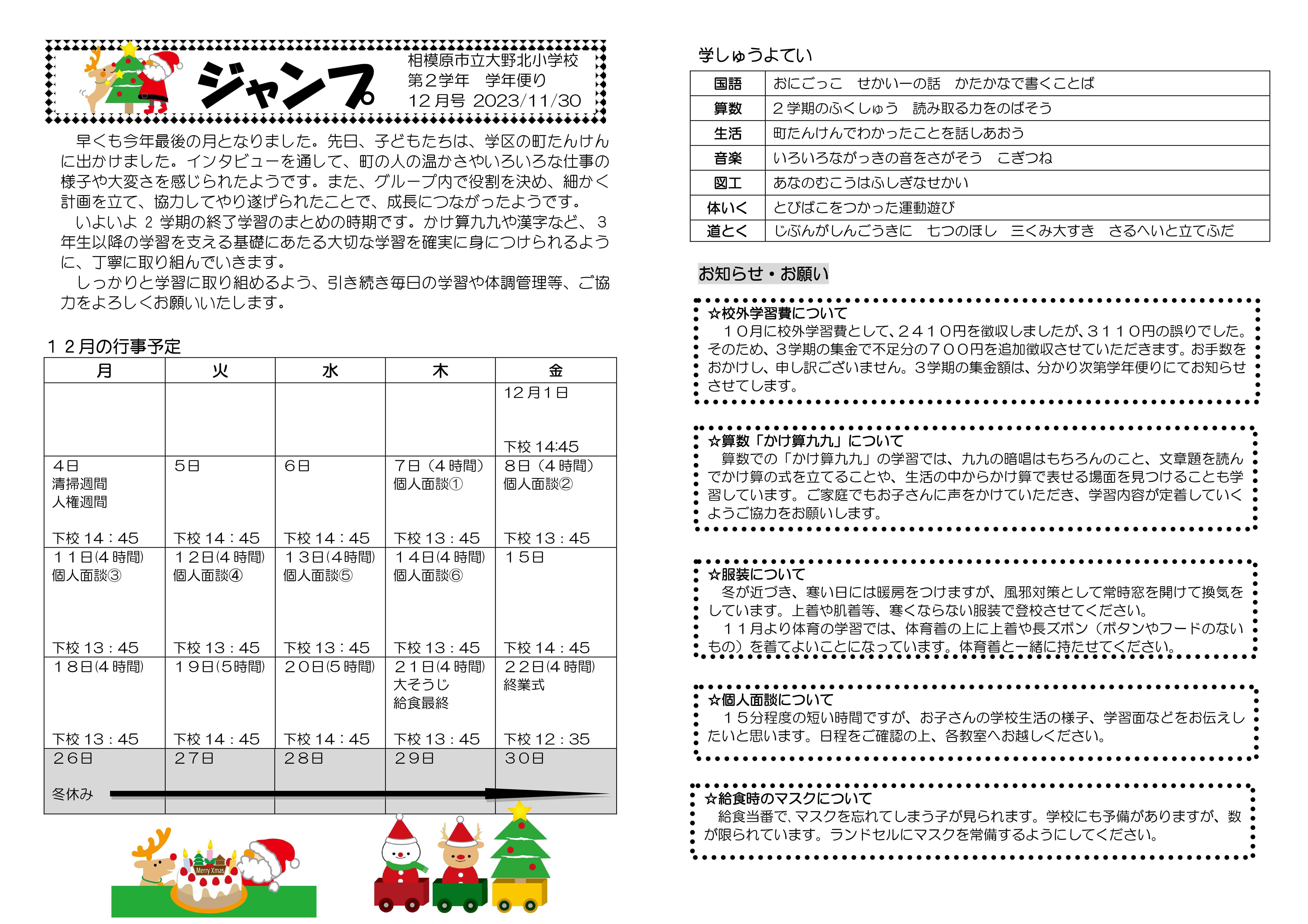 2年学年便り12月号