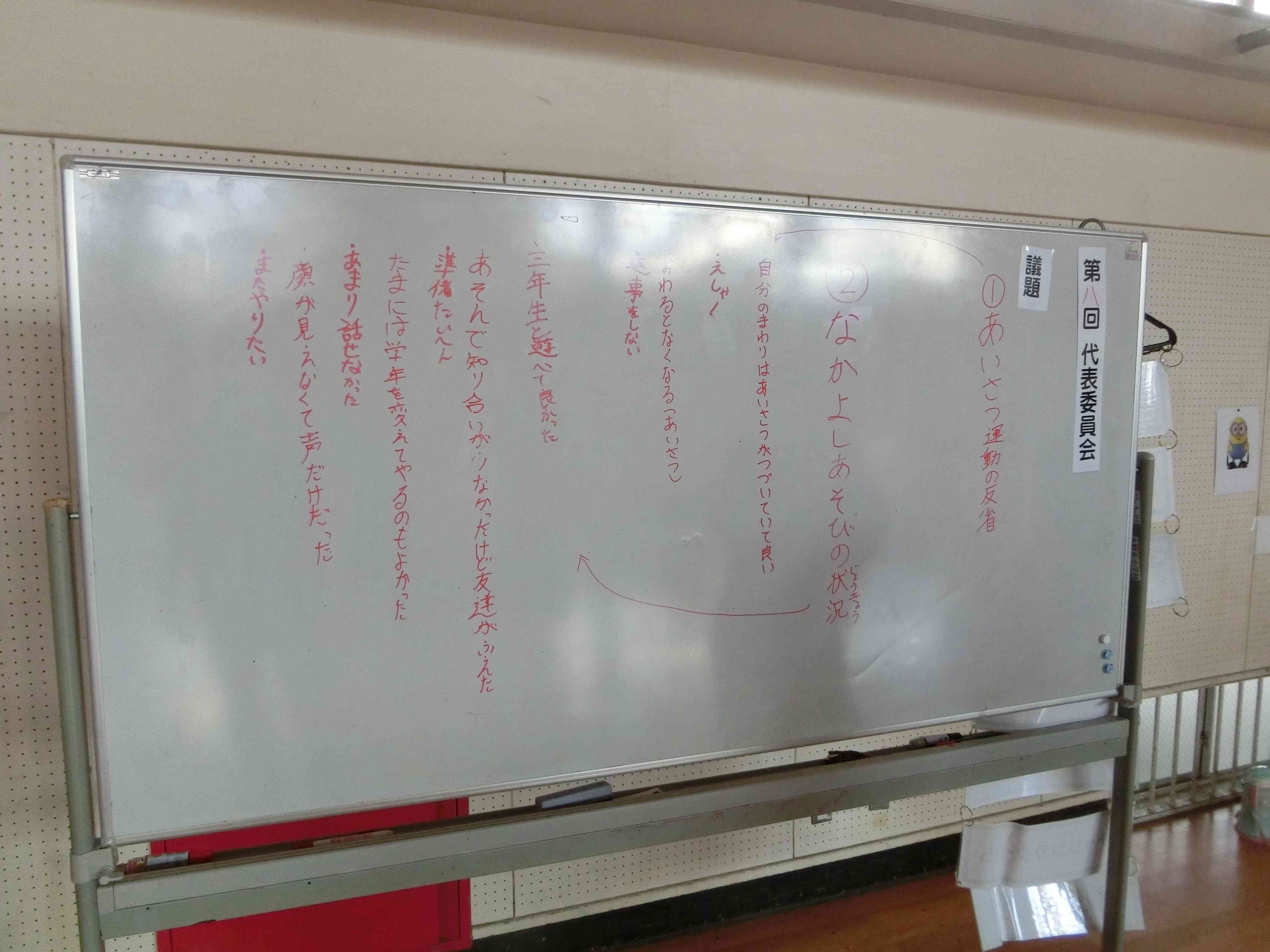昼休みを使って、計画委員の皆さんが、あいさつ運動、なかよし遊びの振り返りをしています。
