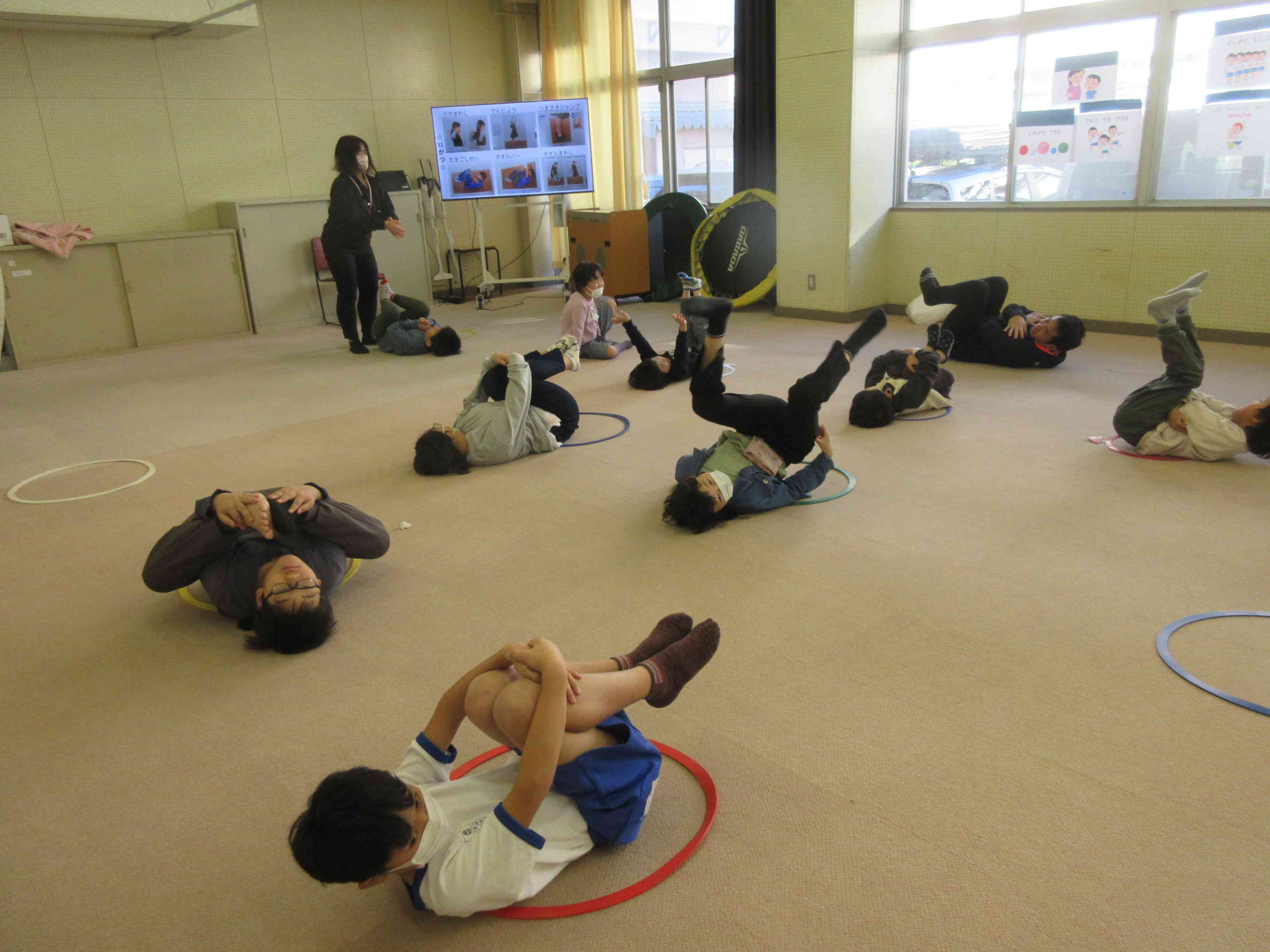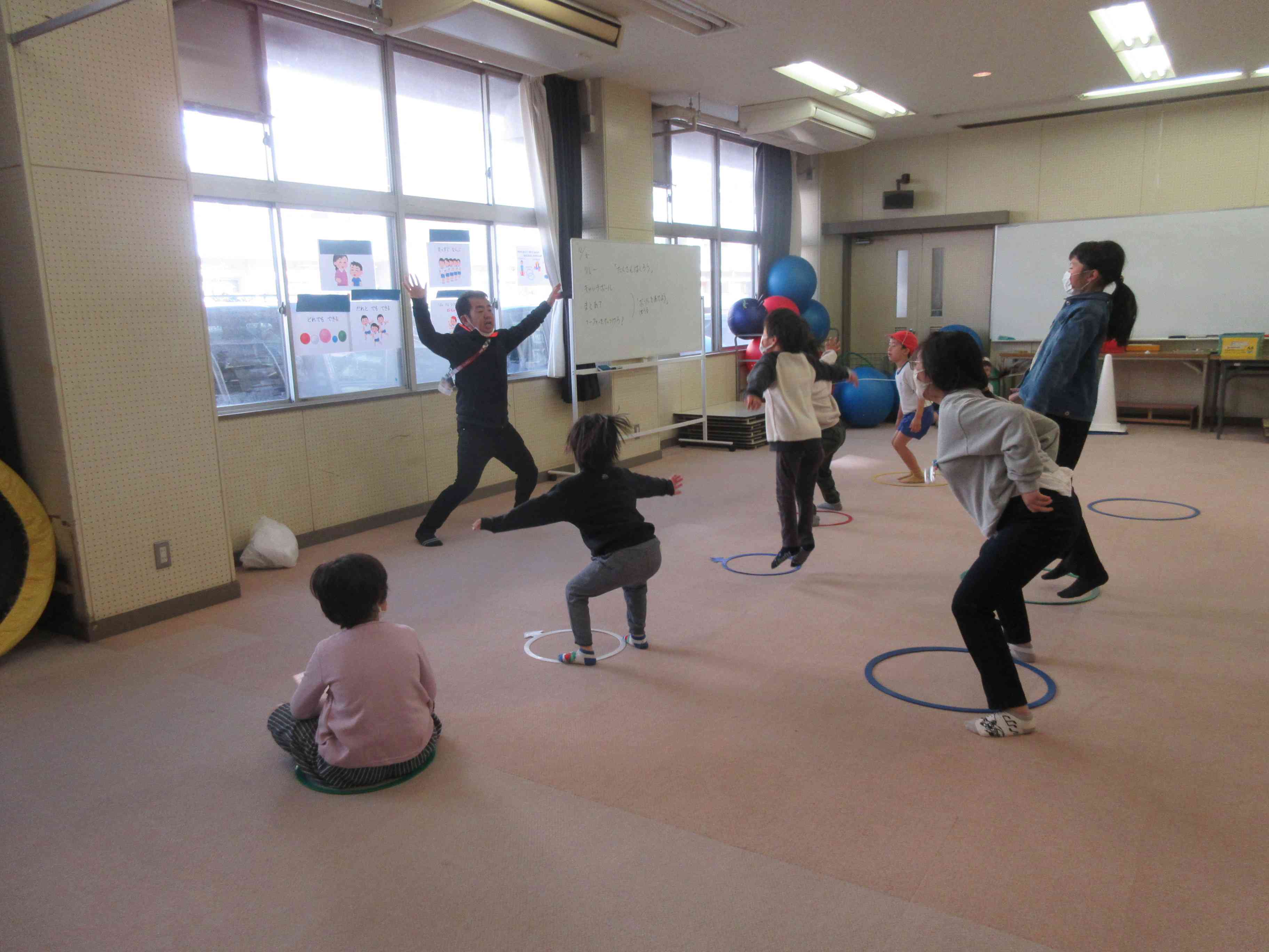 冬の朝は体が縮こまりがちになりますが、 のぞみ級では朝の運動をしています。 ジャンプしたり卵のように丸まったり、 体がぽかぽかして気持ちもほぐれてきます。