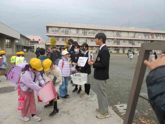 北中とのあいさつ運動も今学期は最終日を迎えました。 中学生がもっていた「あいさつ」プレートを 持たせてもらったり、 家からもってきたプルタブを渡したり、 あいさつだけではない関わりも生まれていました。 北中の皆さん 3日間ありがとうございました。