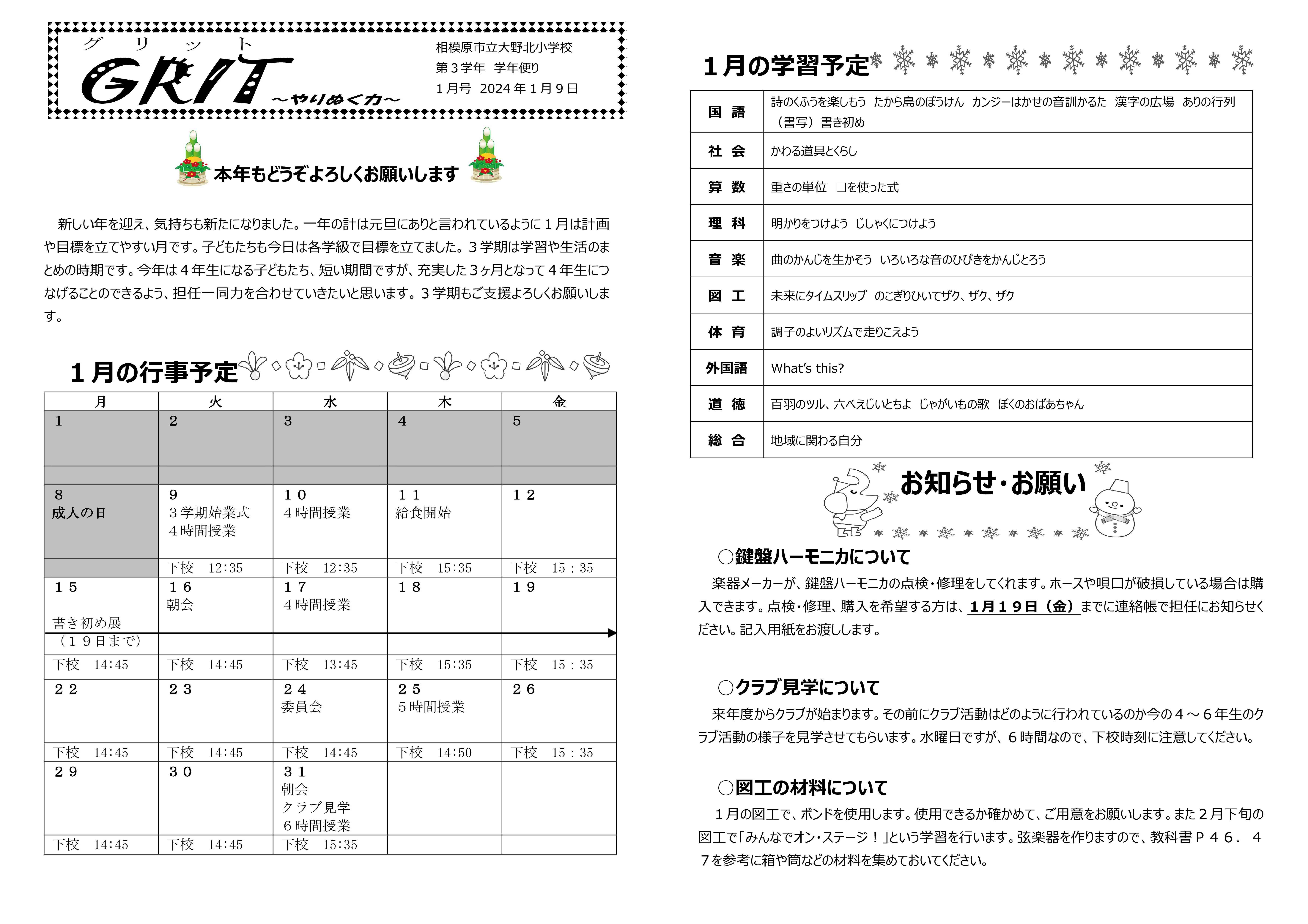 3年学年便り1月号