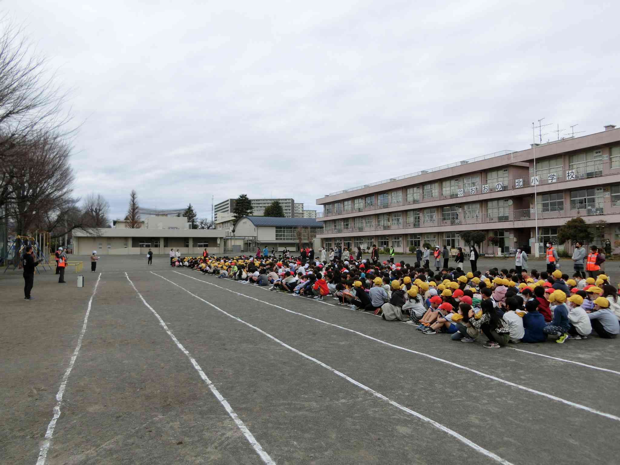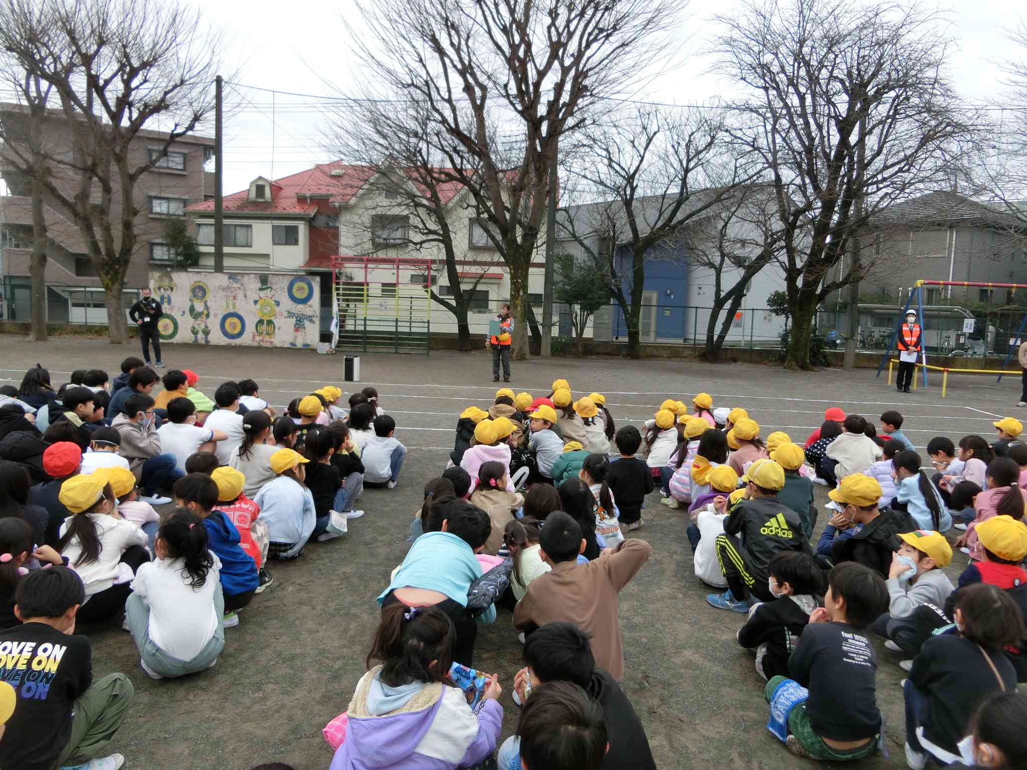 本日の中休みに子どもたちへの「予告なし」の避難訓練を実施しました。 予告なし、休み時間の実施、出火元を給食室想定で行ったので西側の昇降口は使用しないなど子どもたちが「自分で考えて自分で身を守る行動ができるか」が試される避難訓練となりました。 欠席者を除き818名の児童が校庭に避難完了するまでにおよそ6分かかりました。