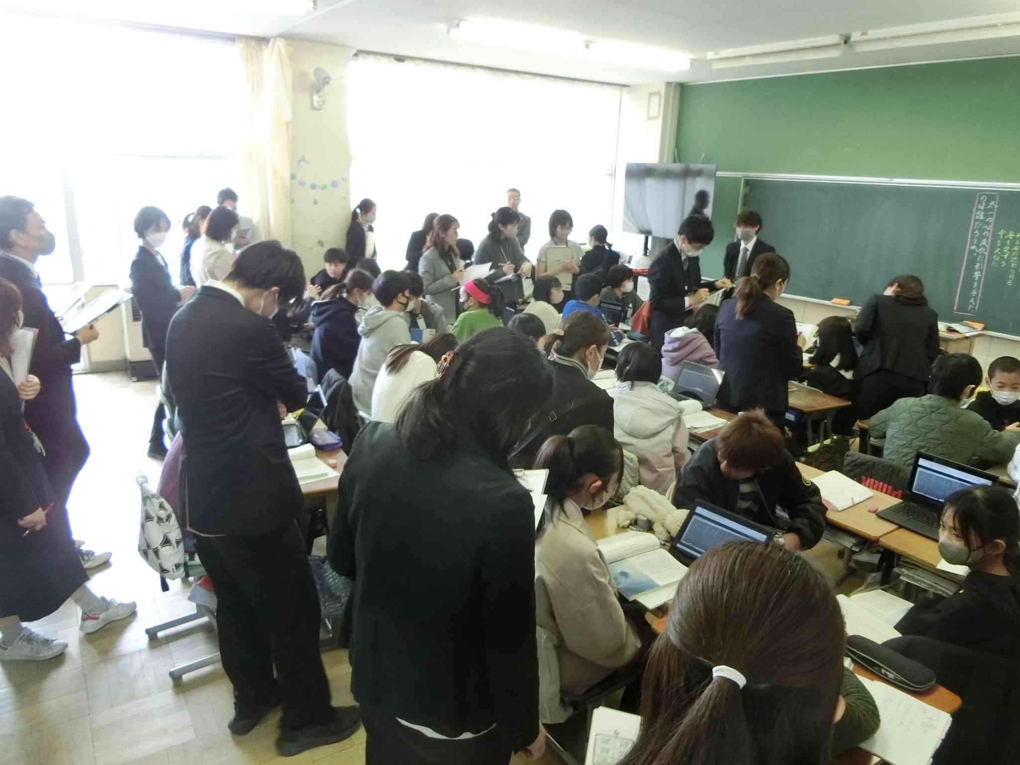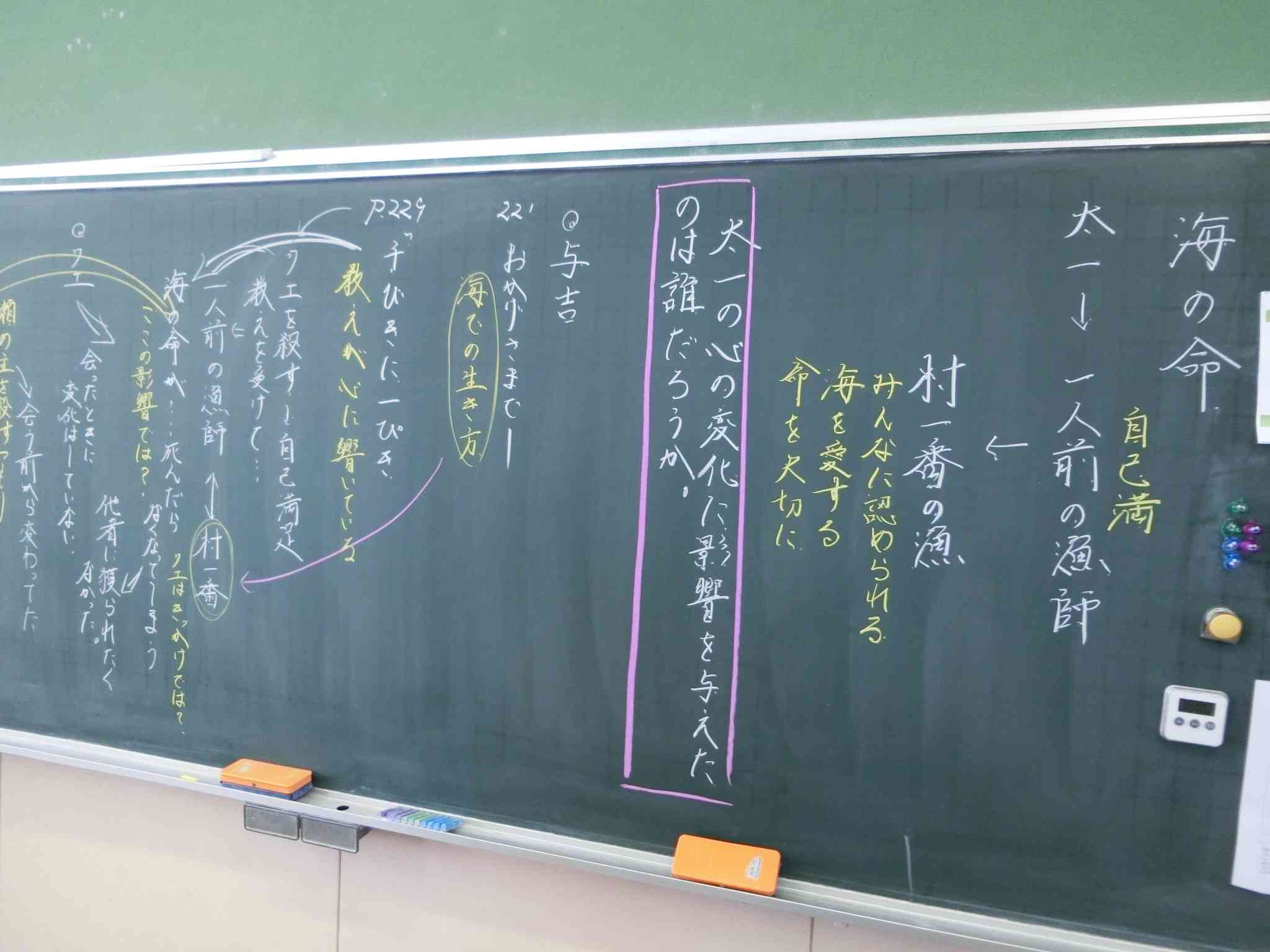 5校時に、大学の先生をお招きして研究授業を行いました。 6年生の「海の命」の学習です。 太一の成長(気持ちの変容)に影響を与えた人物について考えを共有しあいました。 放課後には先生方で研究協議を行います。