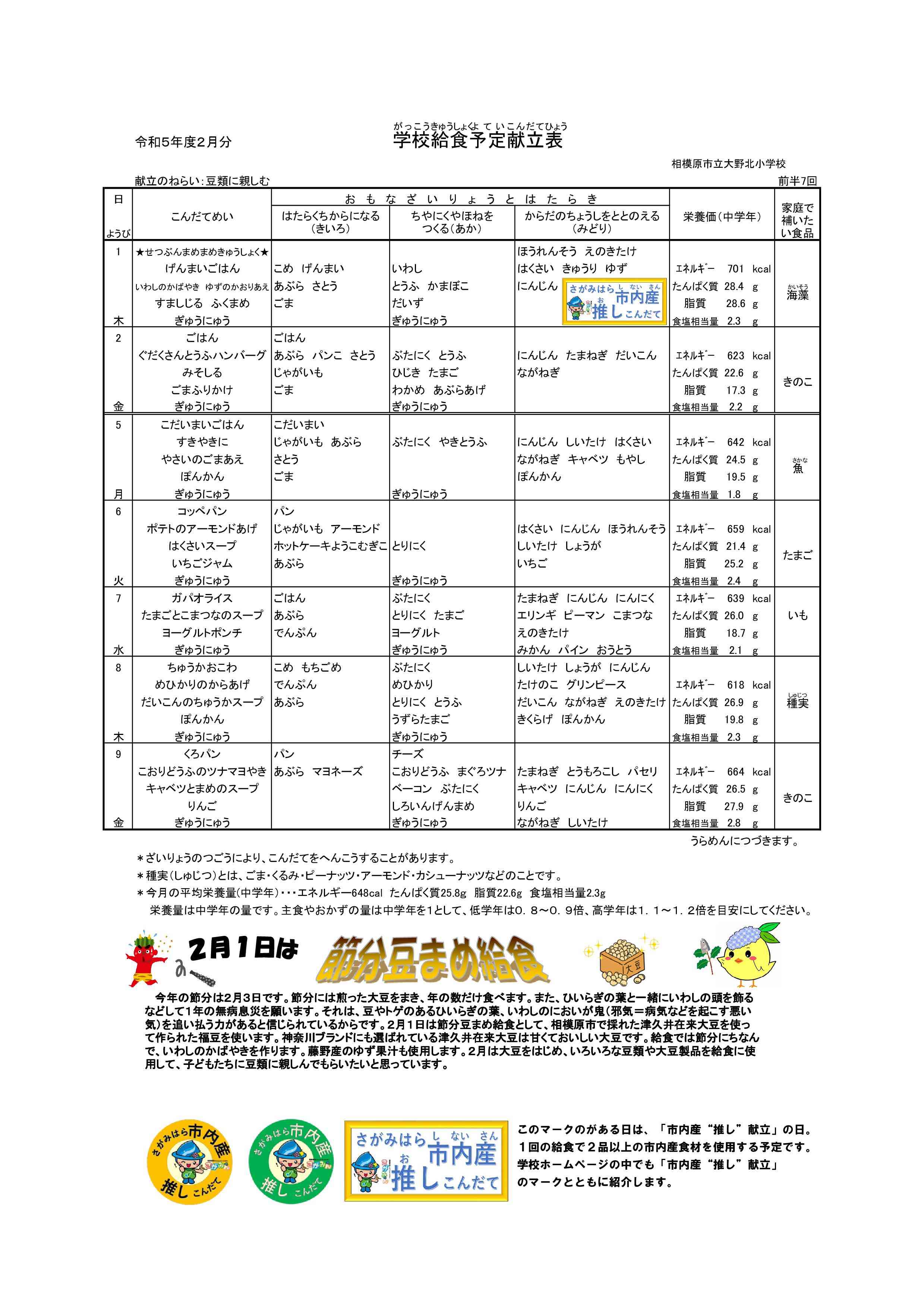 給食献立表2月号