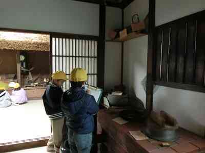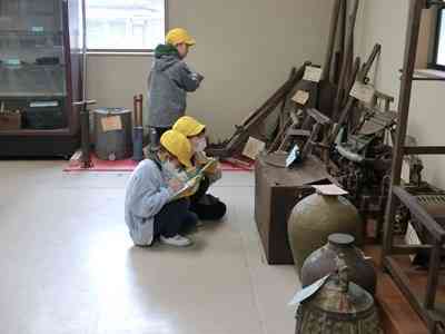 社会の学習で昔の道具について調べています。隣の淵野辺小学校には「ふるさとの家」があり、昔の道具がたくさんあるので、お邪魔させてもらい見学しました。直接触らせてもらいながら昔、どんなものが使われていたのか、昔の学校の写真などを見ました。