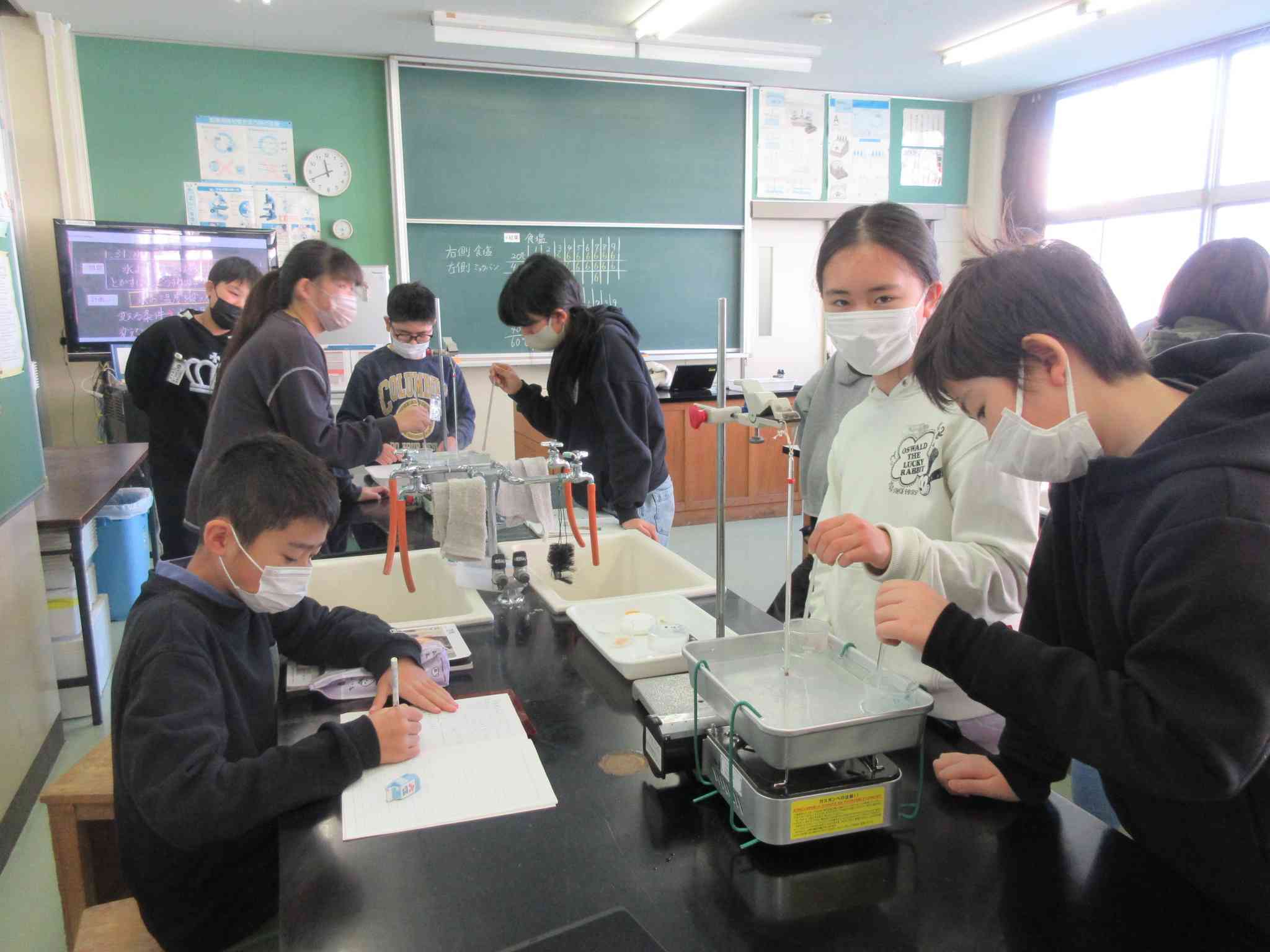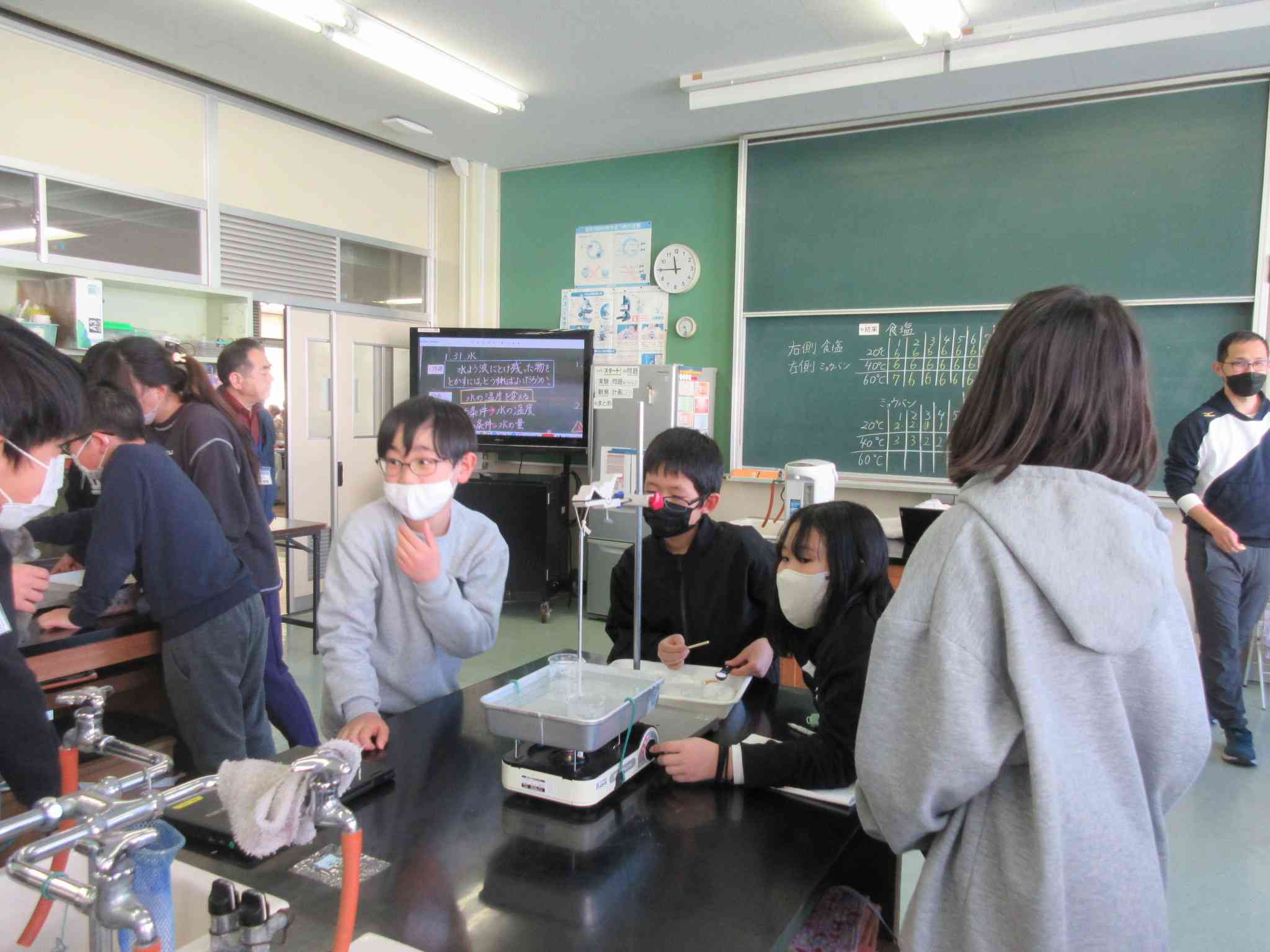 5年生の理科でものの溶け方を学習しています。 食塩やミョウバンを水に溶かし、 とけきれなかったものがあたためるとどうなるか実験をしました。