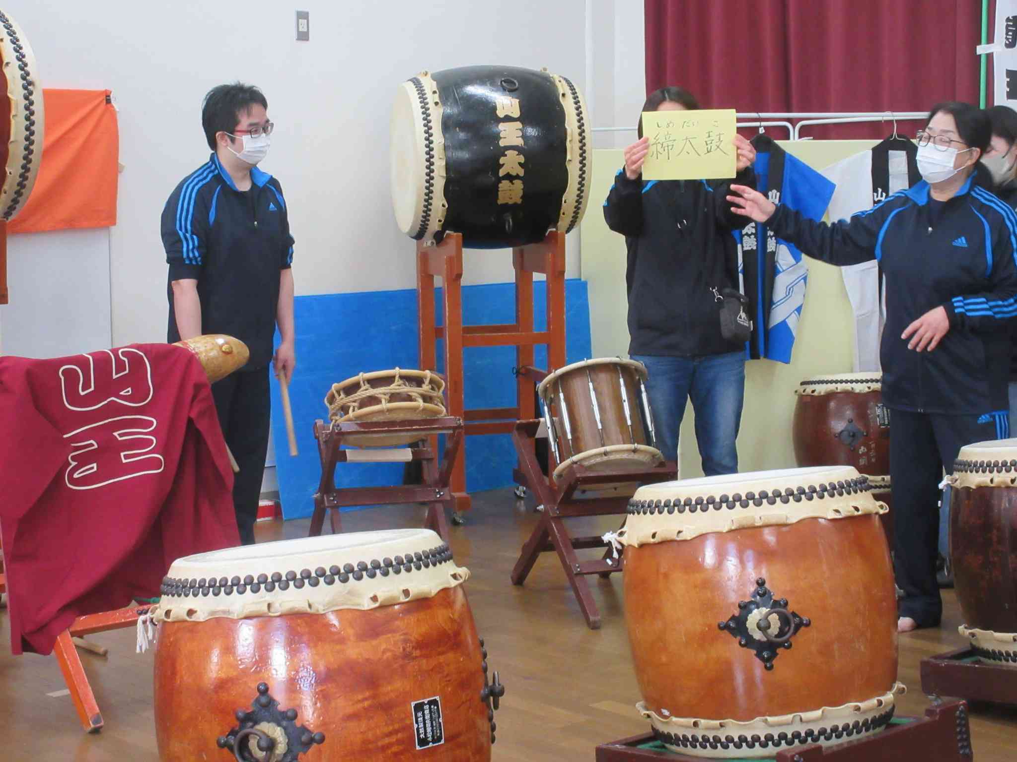 2年生はこどもセンター近くの淵野辺集会所に、 山王太鼓を見せてもらいに行きました。 普段は土曜日に練習をしているのですが、 特別に見せてもらえることになりました。 山王太鼓の歴史や太鼓の種類の話を聞いたあと、 実際にたたいてくれました。 太鼓の振動が体の中心に響いてきました。 そして、子どもたちも太鼓をたたかせてもらいました。