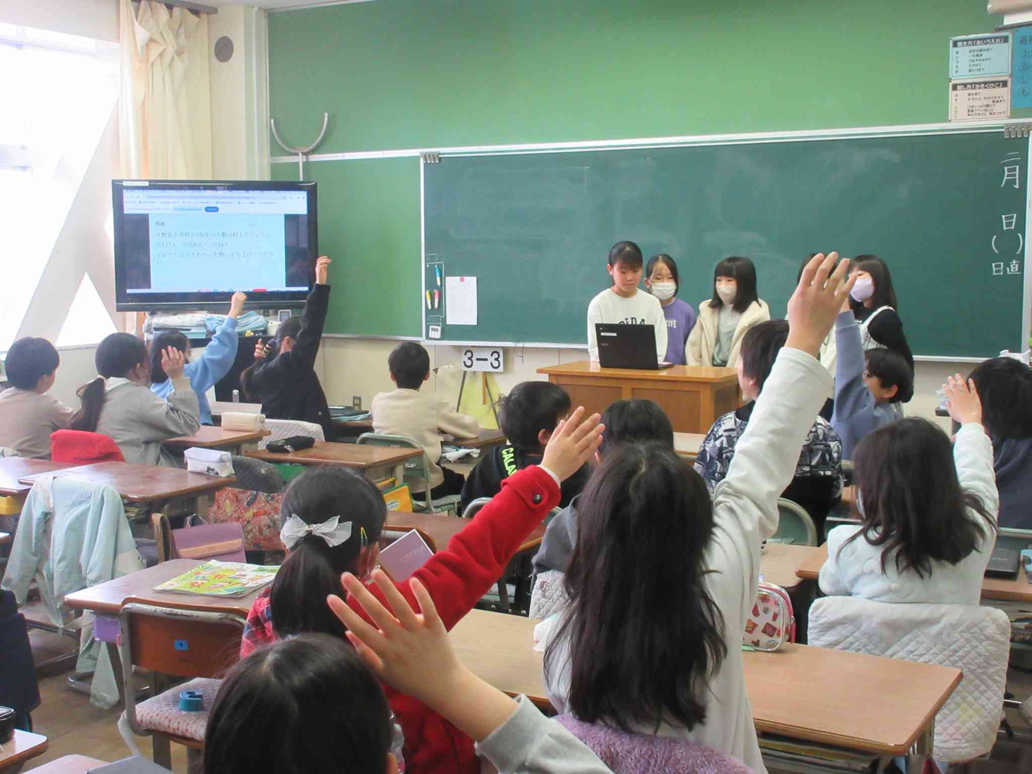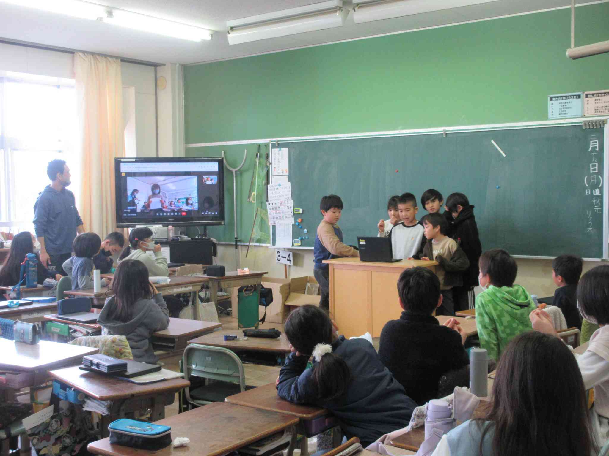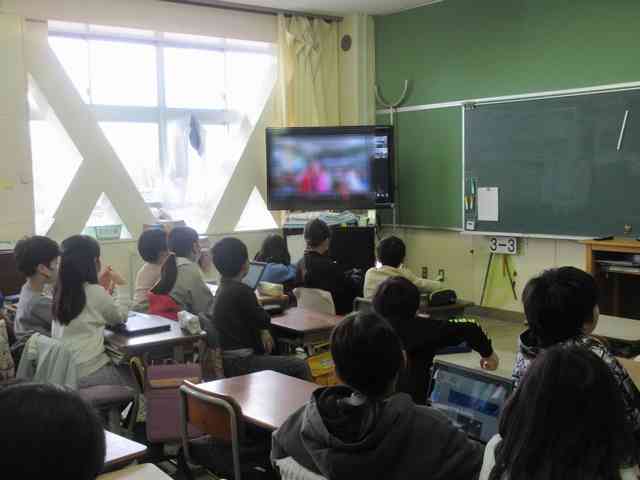 3年生はオンラインでの2回目の交流会を行いました。 お相手は、東京都の中川北小の3年生です。 総合で調べたでいらぼっちや学校のことなどを発表しました。 クイズを出し合ったり、質問をしあったり、 今度取り入れたい発表の仕方を見つけた人もいました。