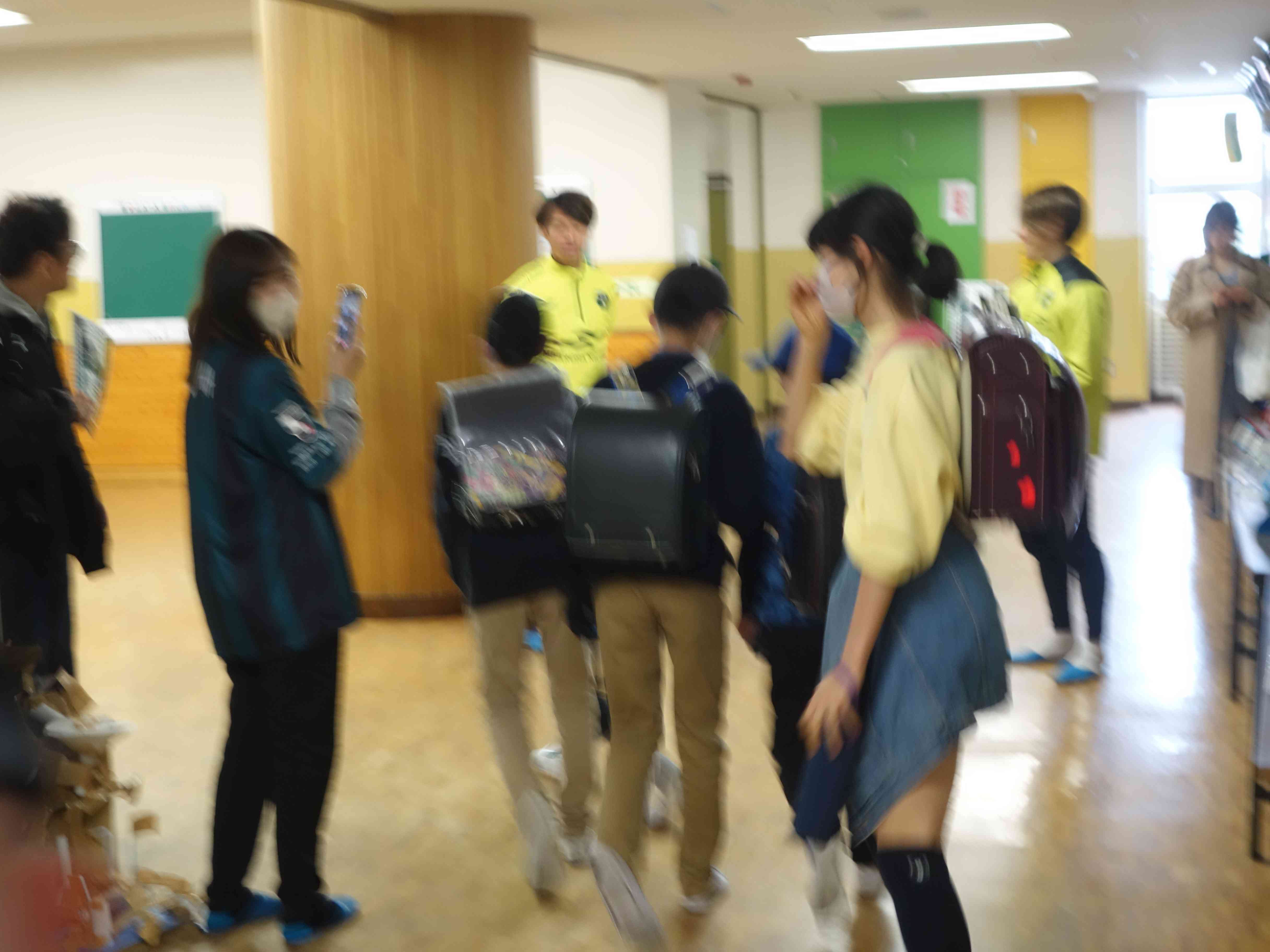 SC相模原の方があいさつ運動にきました。みんなよろこんでいました。