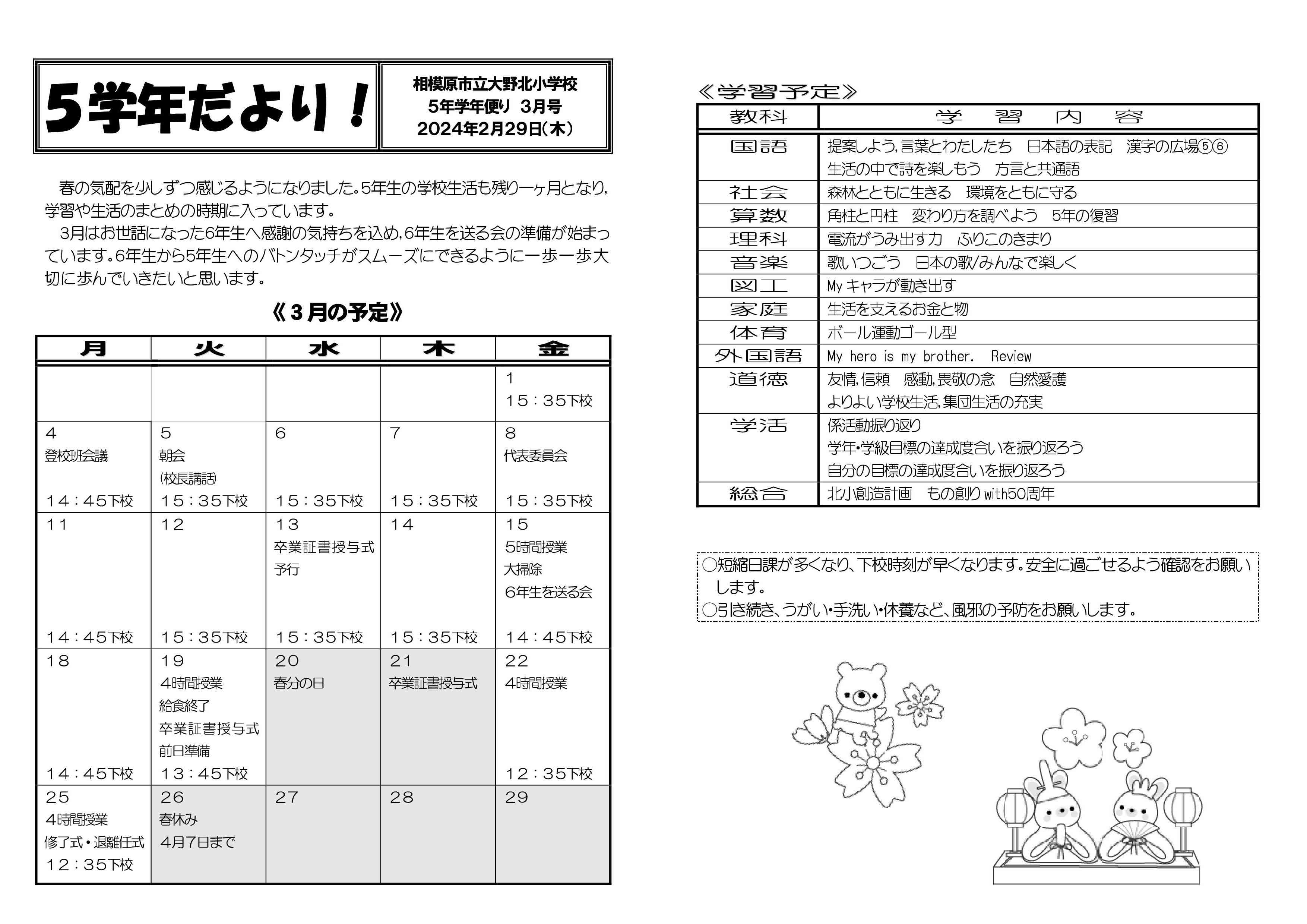 5年 学年便り 3月号