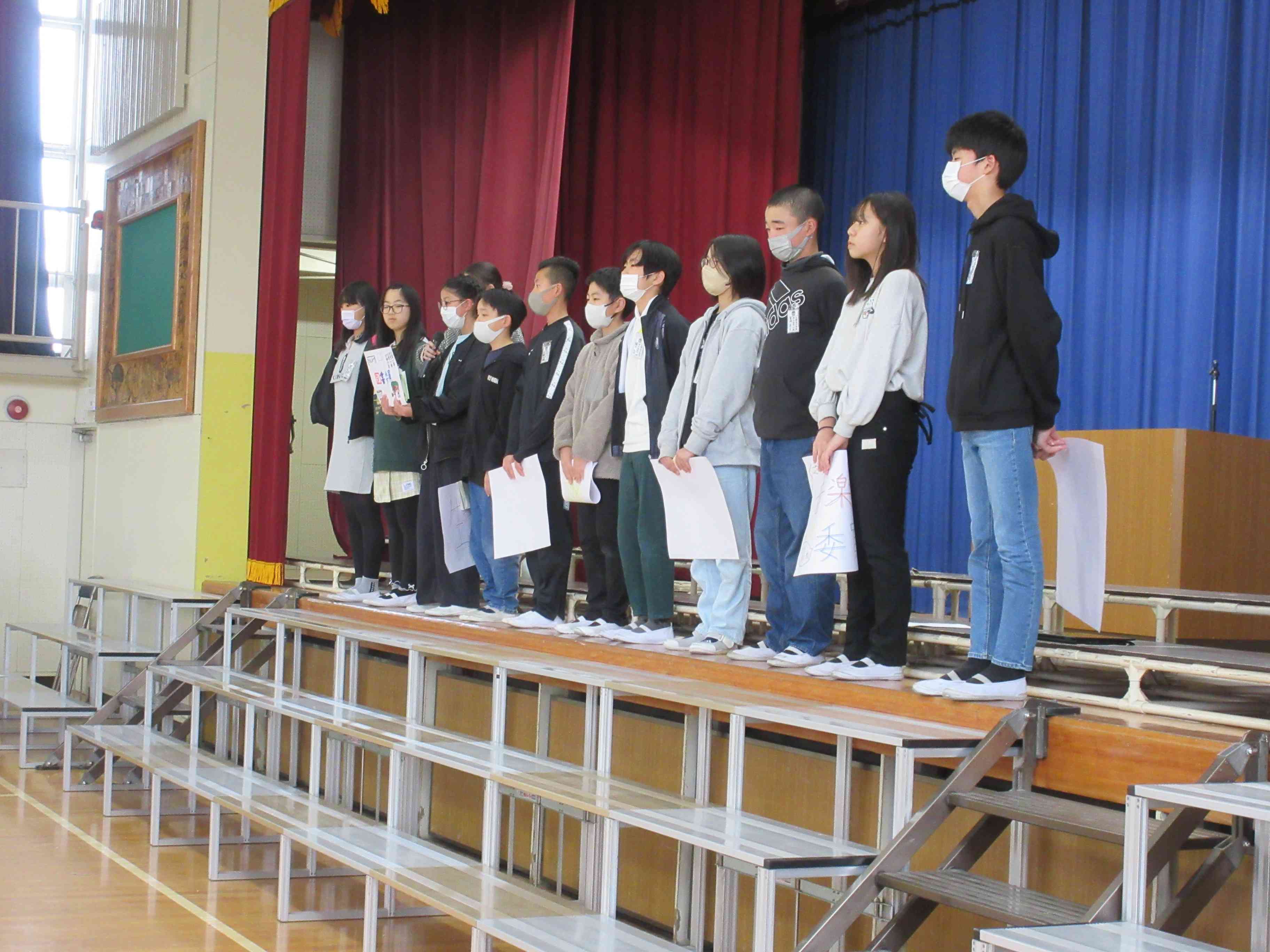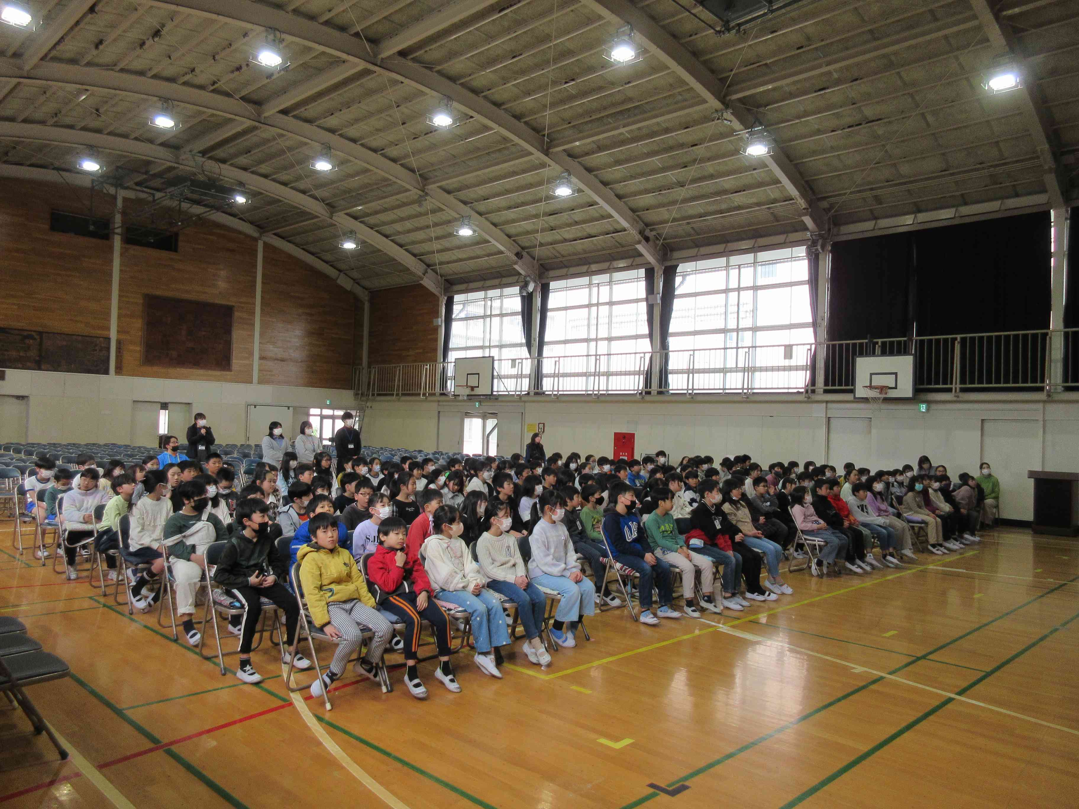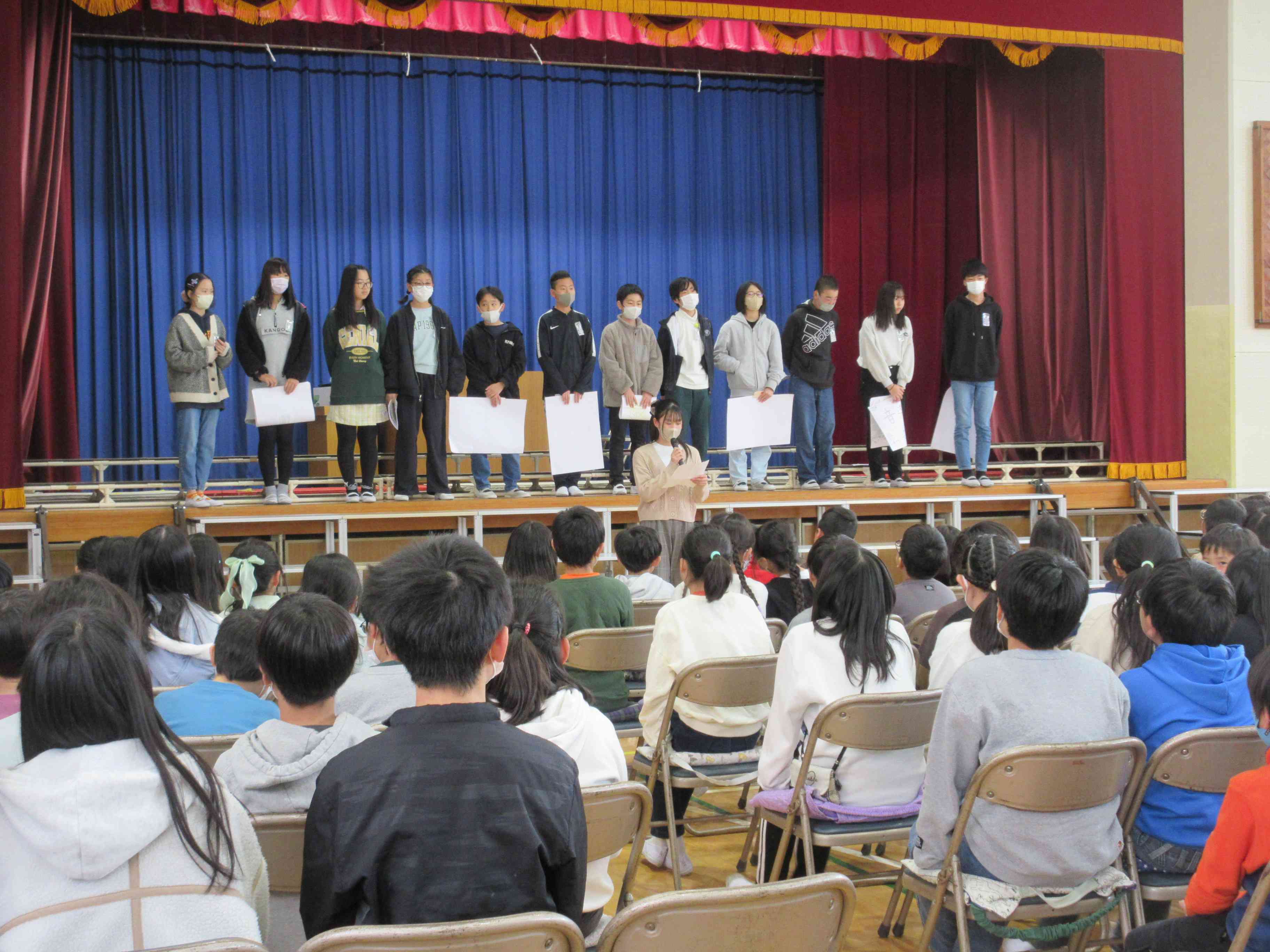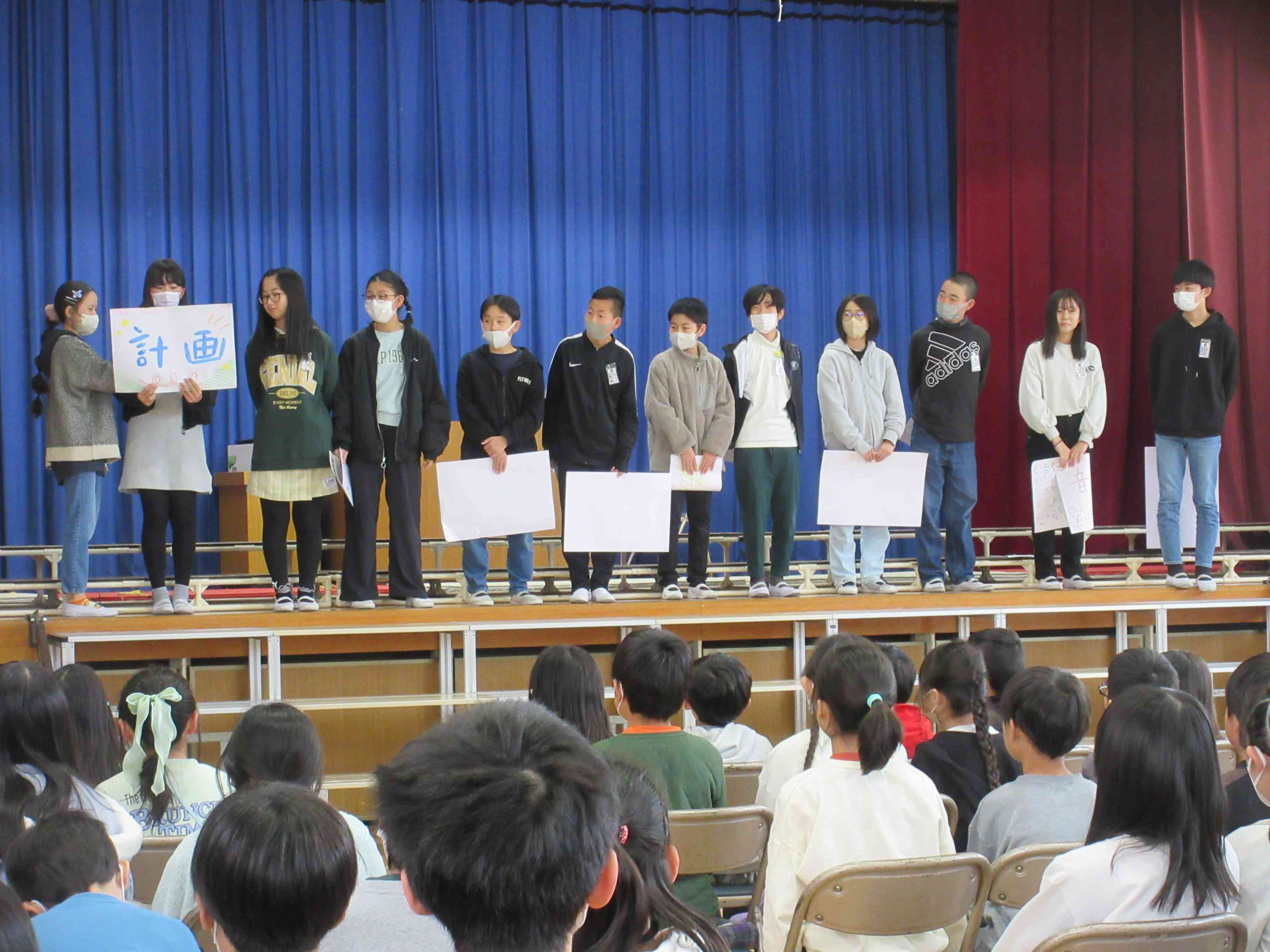 もうあとひと月もしないうちに、 みんな卒業式や修了式を迎えます。 4年生も4月からは委員会活動が始まります。 そのために6年生の各委員長から委員会紹介をしてもらいました。 「・・地味だけど誰かの役に立ちたい人・・」 「・・人前で話すことができるようになります。」 「○○が好きな人もそうでない人もいろいろな人と関われます」 などなど、心を引きつけられるコメントに4年生が真剣に聞き入っていました。