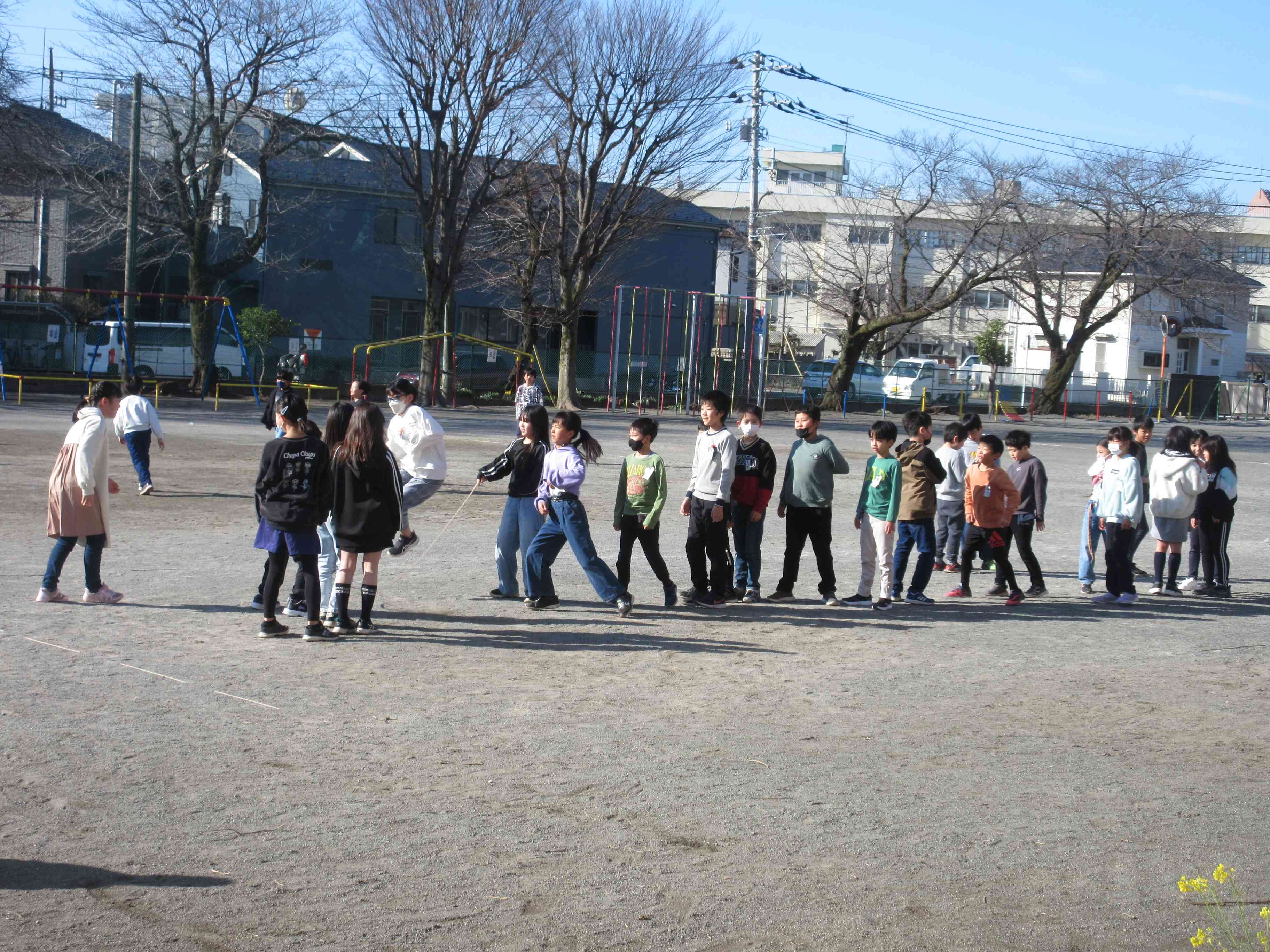 4年生の最後の学年集会は長縄大会です。 毎朝、どのクラスも長縄の練習に励んでいます。