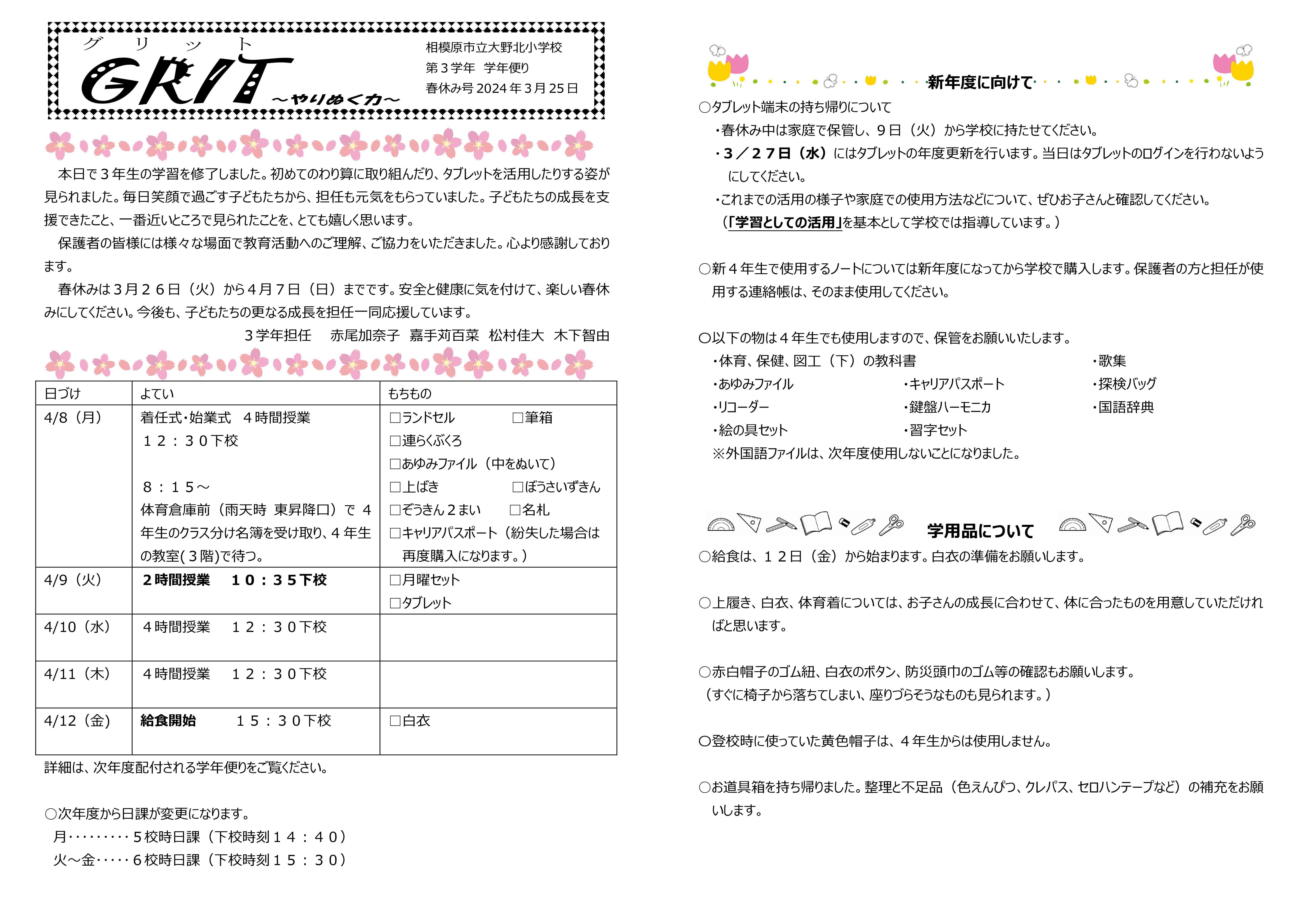 3年 学年便り春休み号