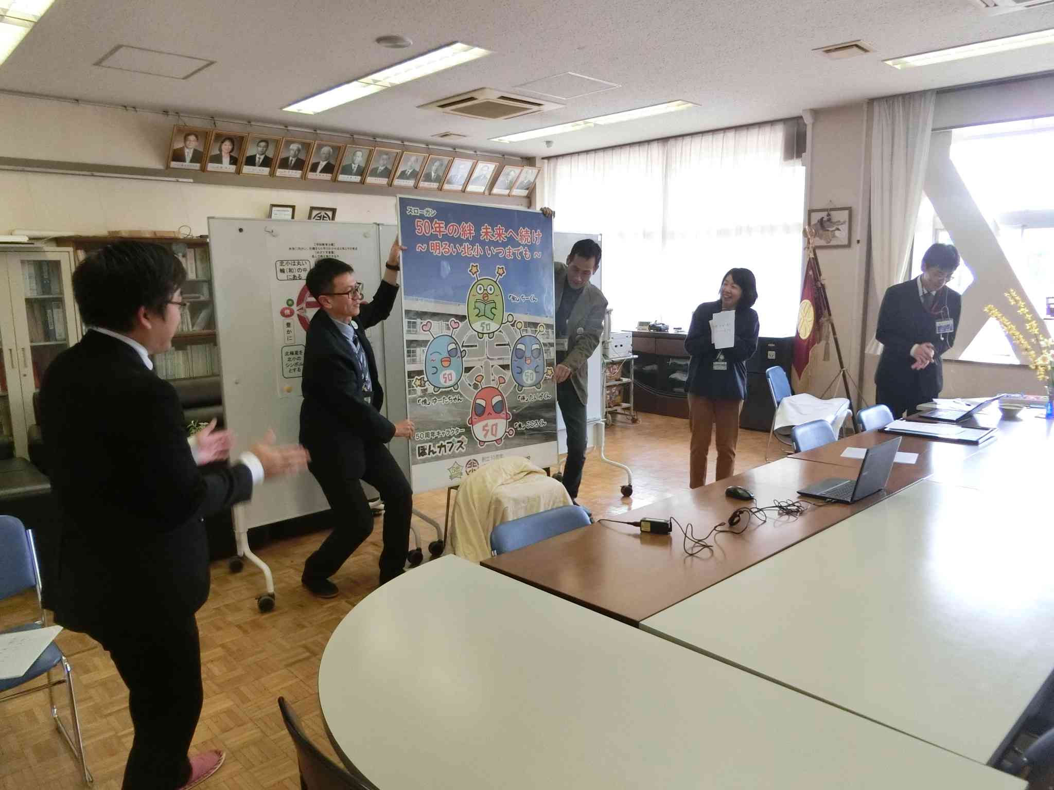 着任式では、4月に着任された先生方の紹介を行いました。 始業式では校長先生から子どもたちへ 「めあてをもって 進んで考え 実行しよう」 というお話がありました。 代表の児童が新学年での目標を発表しました。 50周年実行委員の皆様から横断幕と大型ポスターのお披露目を行っていただきました。 横断幕は校舎3階のベランダに、大型ポスターは職員室前の廊下に掲示させていただきました。 来校の際はぜひご覧になってください。 実行委員の皆様本当にありがとうございました。【添付ファイル】