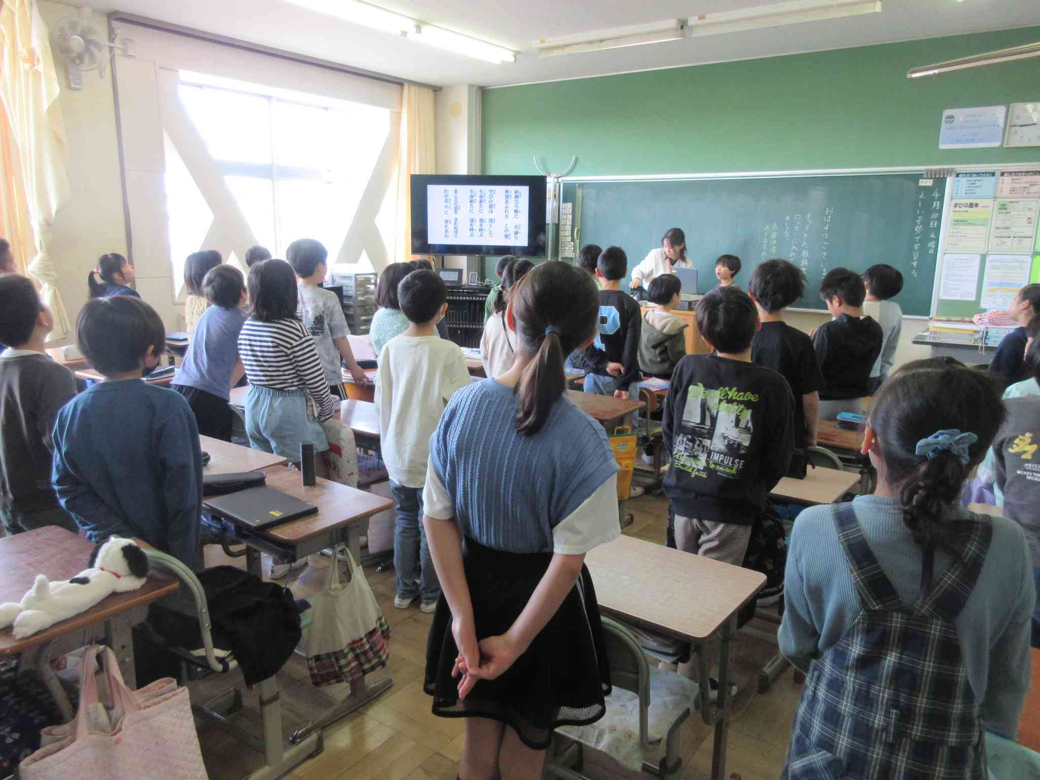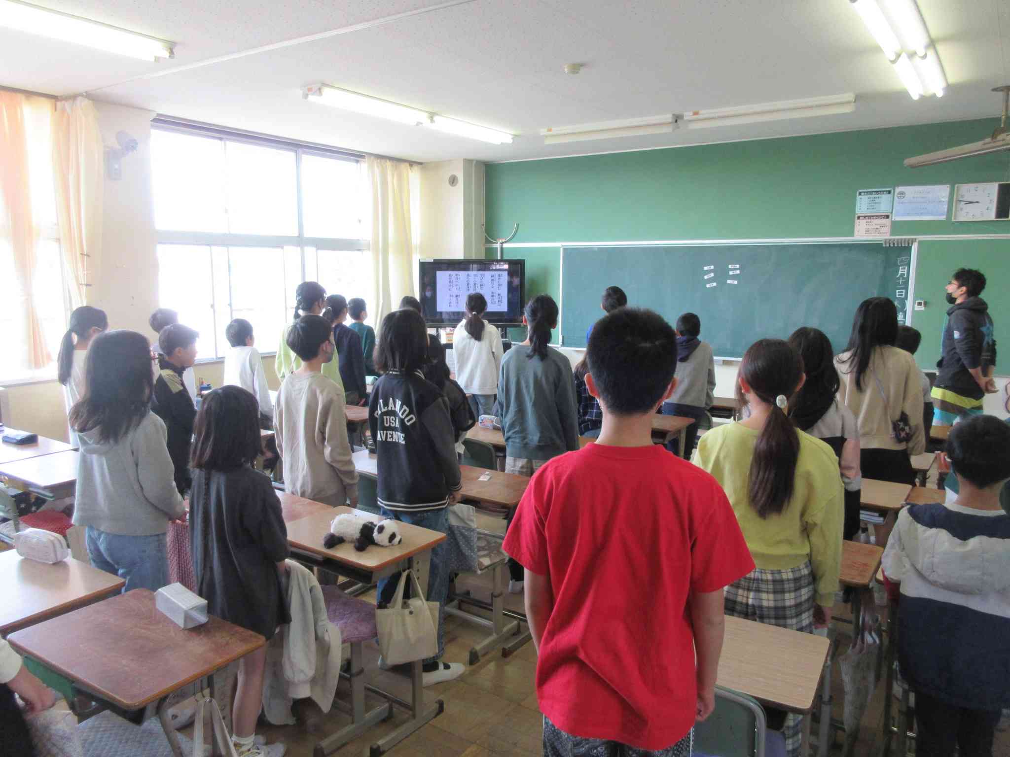 4月の朝の会では、どのクラスも「校歌」を歌っています。 大野北小とともに生まれた校歌を大切に歌っていってほしいですね。