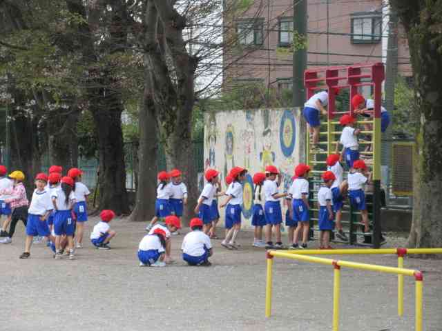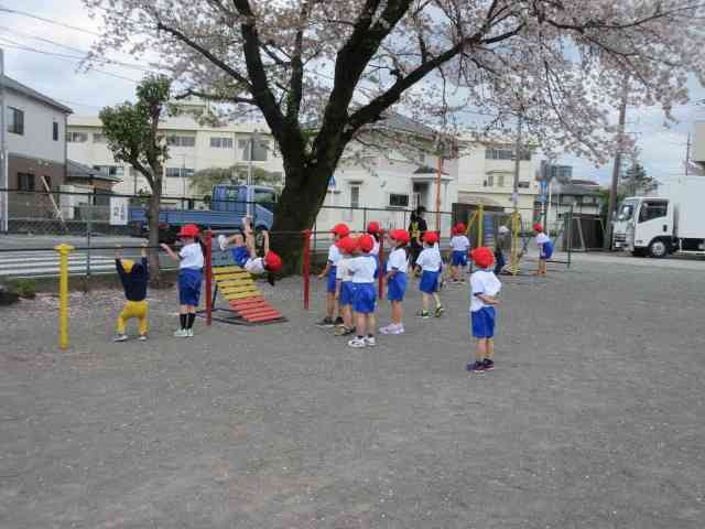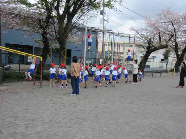 1年生の初めての体育は、 まず体育着に着替えることです。 そのあとは、 校庭に出て遊具の使い方を習いました。 休み時間も安全に使ってくださいね。