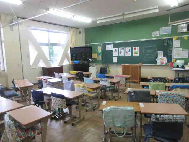 1年生もだいぶ学校に慣れてきました。 今日から休み時間の外遊びデビューとなりました。 黄色い帽子をかぶった1年生。 あとの子はどこに行ったのかな? 教室は空っぽでした。