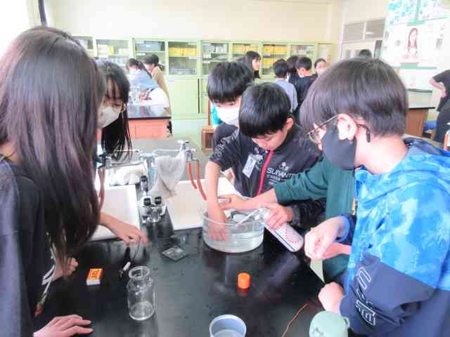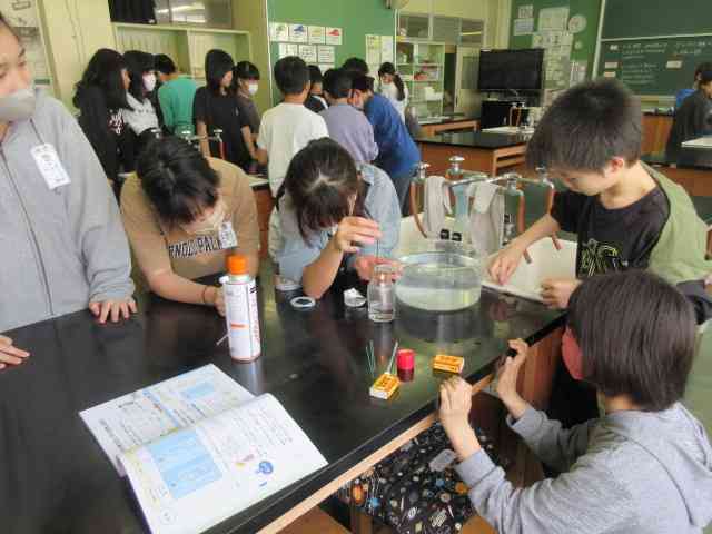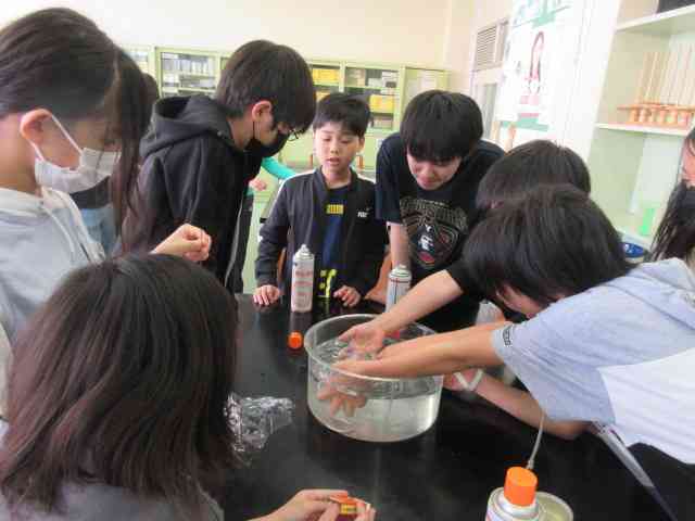 酸素、二酸化炭素、窒素の成分の中で、 ものが燃える働きを助けるのは何か? 実験をしました。 集気瓶の中にガスをためるのも一苦労でしたが、 結果は一目瞭然。 しっかり記録ができたかな!?