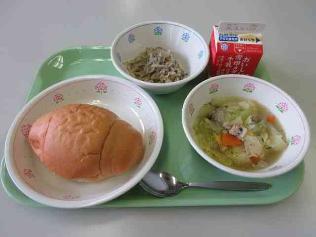 今日の献立は、ロールパン、ポトフ、もやしのソテー、牛乳です。 ポトフはフランスの家庭料理の一つです。「火にかけた鍋」という意味のフランス語です。フランス料理では、大きな肉の塊のままで野菜と一緒に煮込んで食べる時に取り出して、小さく切って食べるそうです。給食では、豚肉も人参、じゃがいも、キャベツなど野菜も食べやすい大きさに切って、回転釜でコトコト煮込んでポトフにしました。 にんじんは、体の調子を整えるみどりのなかまの食べ物です。【添付ファイル】
