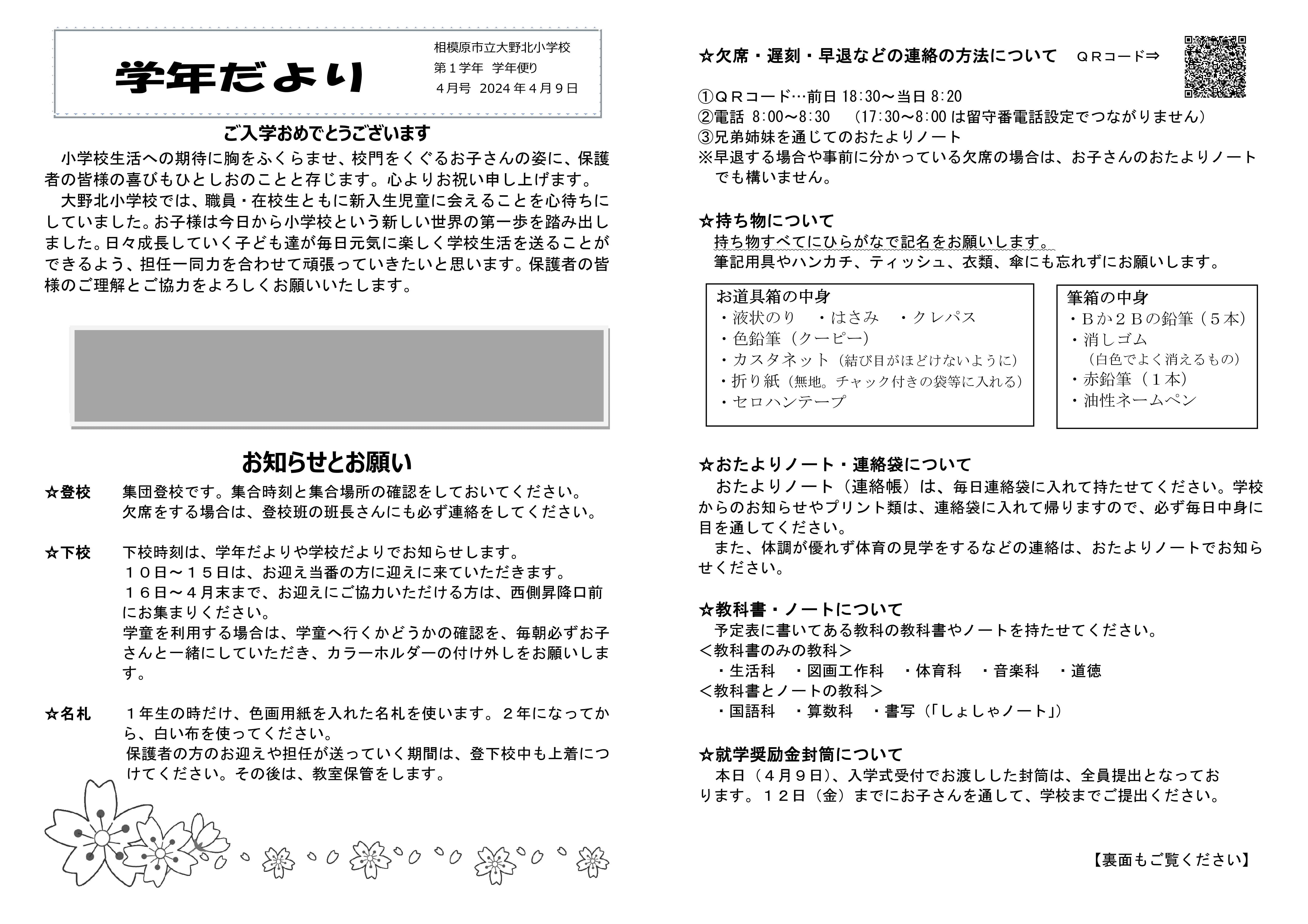 1年学年だより4月1号