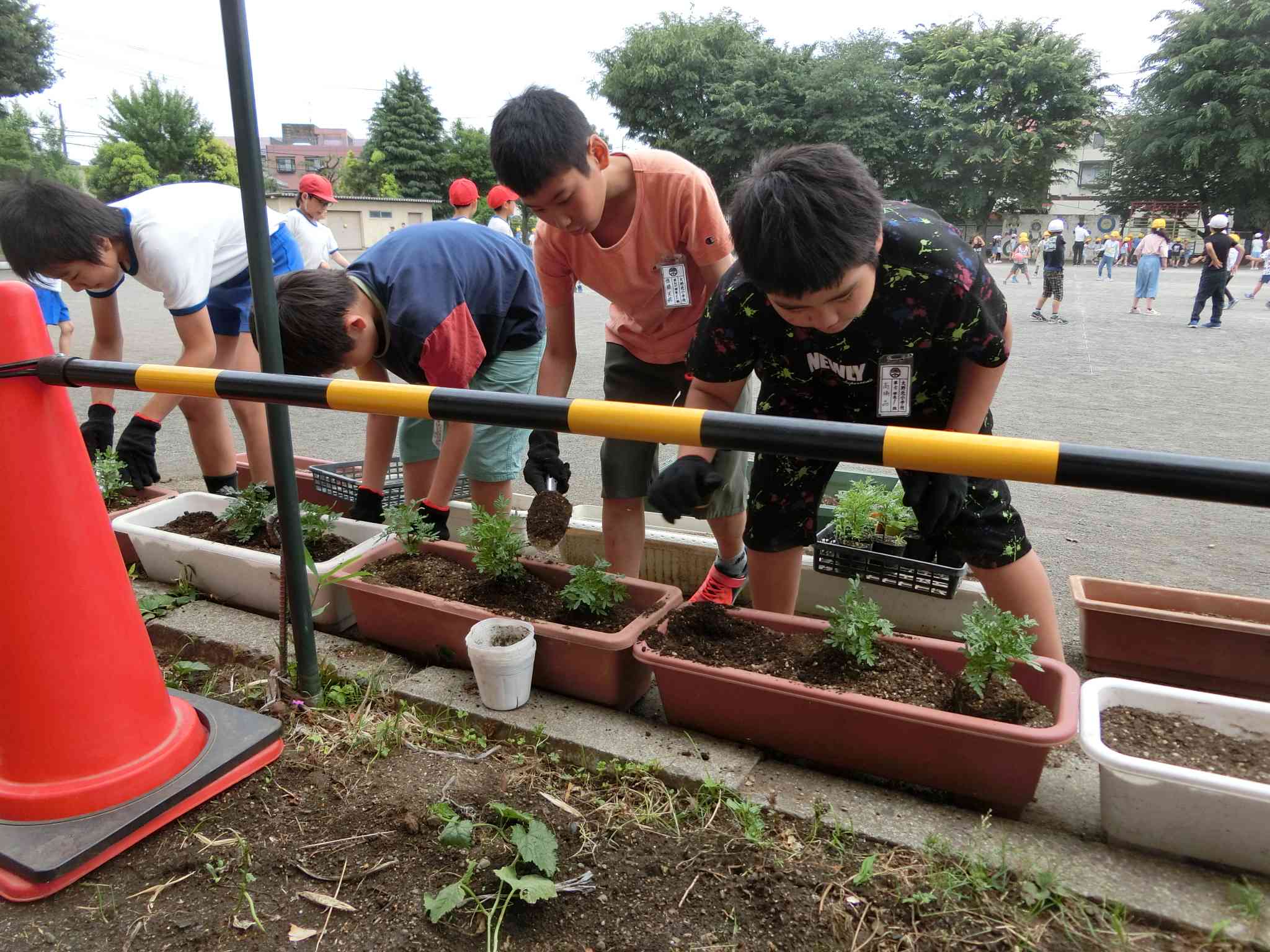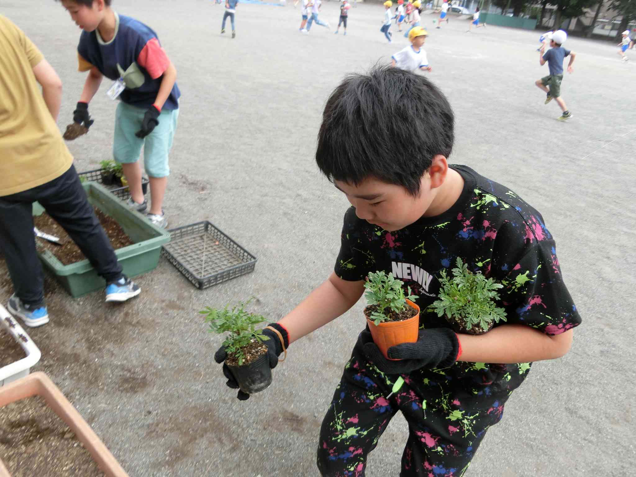 昨年度の3月に全校児童(希望者)で種を蒔いて芽出しをしました。マリーゴールド、サルビア、ミニひまわりの苗を6年生の子がポッドへの植え替えを手伝ってくれました。5年生がポッドからプランターへの植え替えを手伝ってくれました。 花芽が多く膨らんできました。6月5日(水)の開校記念の日にはマリーゴールドも花が咲いていることでしょう。 50周年おめでとう!