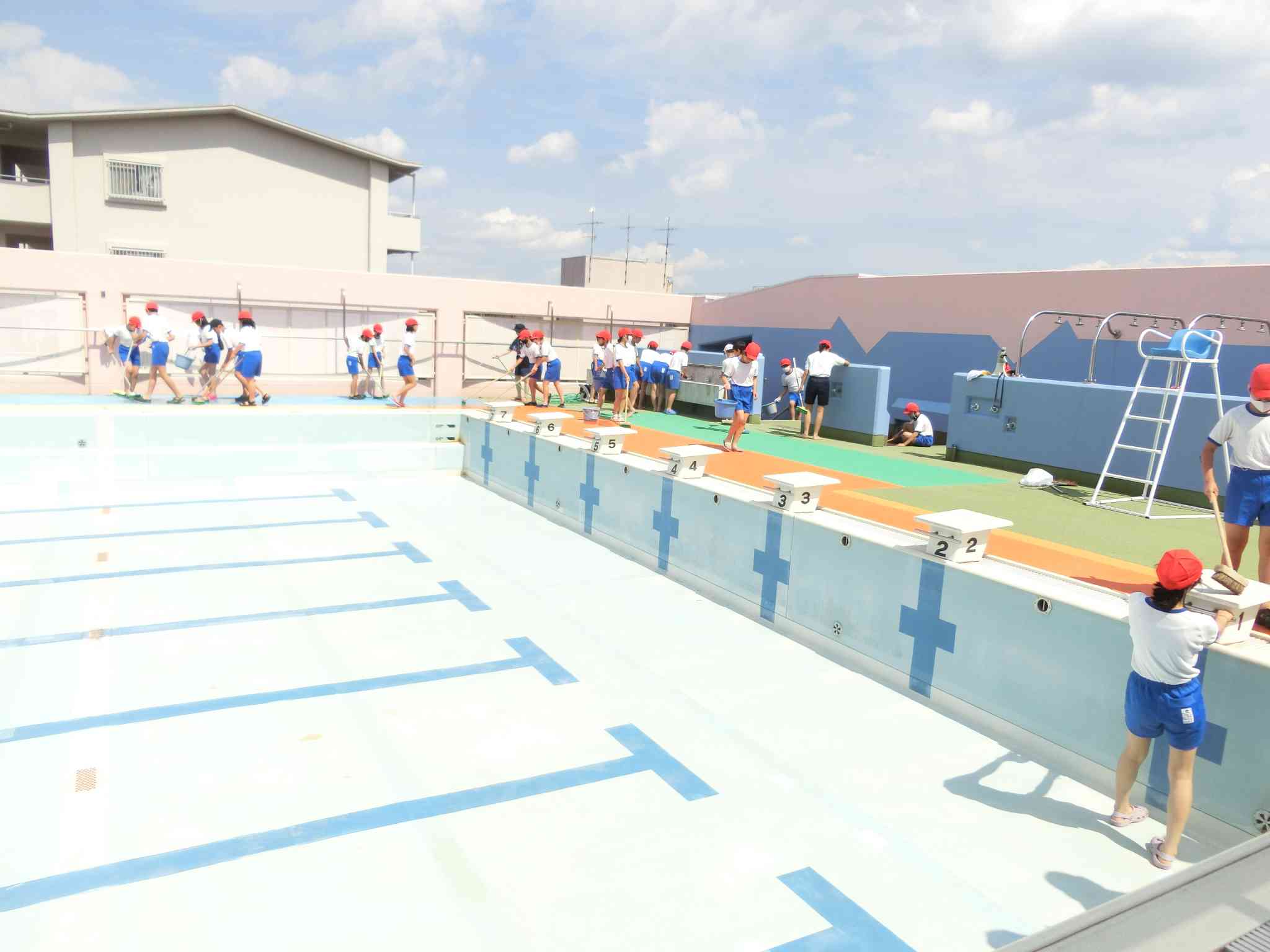 今年も暑い夏が予想されています。 水温と気温、熱中症指数をみながらの実施になると思われますが、プールの環境は整いました。 職員での清掃、6年生児童の清掃、業者による床の補修、ろ過機やポンプの点検、薬剤の納品、水質検査・・・サポート隊の皆様の募集。 また、昨日は消防署の職員にお越しいただき全職員でAED救命救急講習会(職員研修)を実施いたしました。 環境は整いました。あとは良い気象状況の下、安全に水泳学習を行っていきます。【添付ファイル】