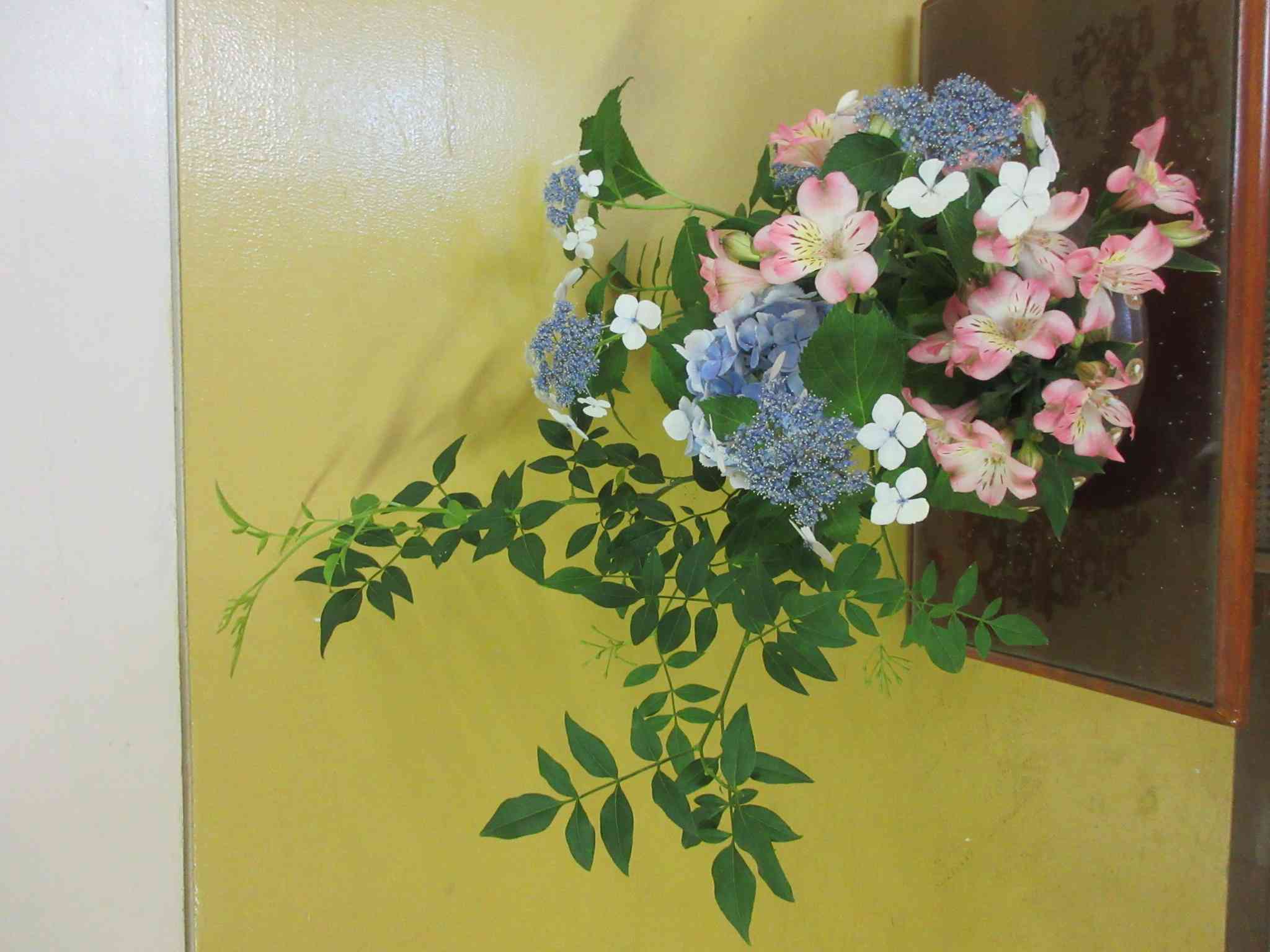 6月17日のお花は、 そけい、あじさい、アルストロメリアです。 あじさいとピンクのアルストロメリアの組み合わせは、 とても優しい雰囲気になりますね。